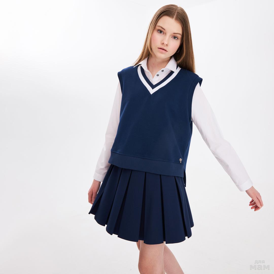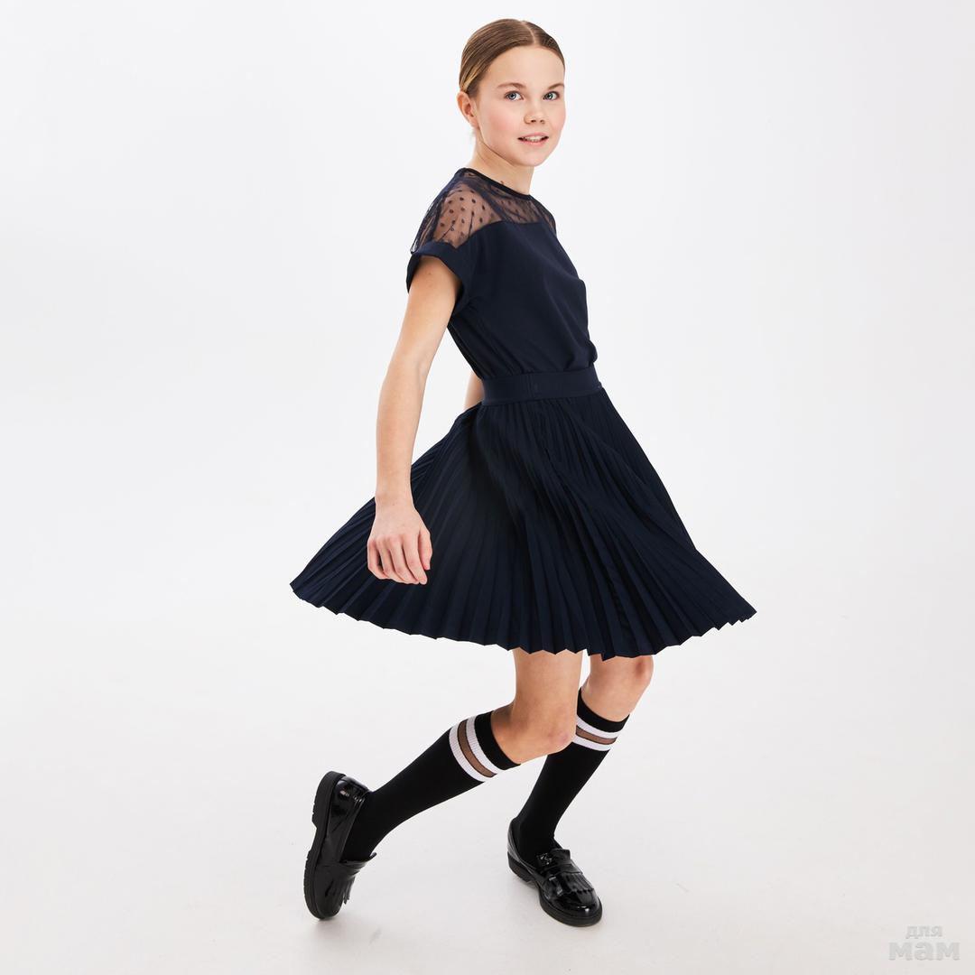 2349-2 юбка текстиль,однотон,складка,молния синий 60% полиэстер, 35% вискоза, 5% эластан 122-140 2280+орг
