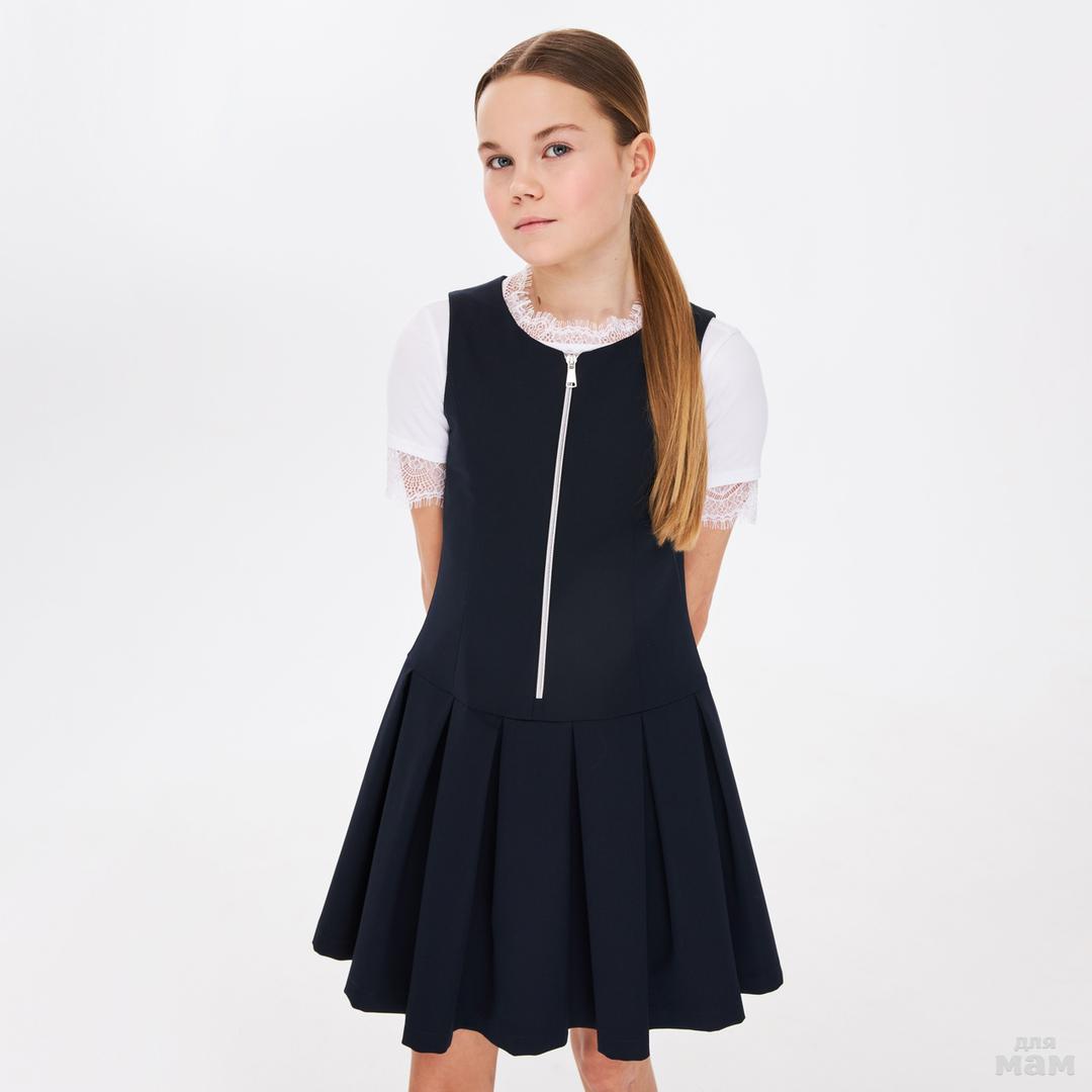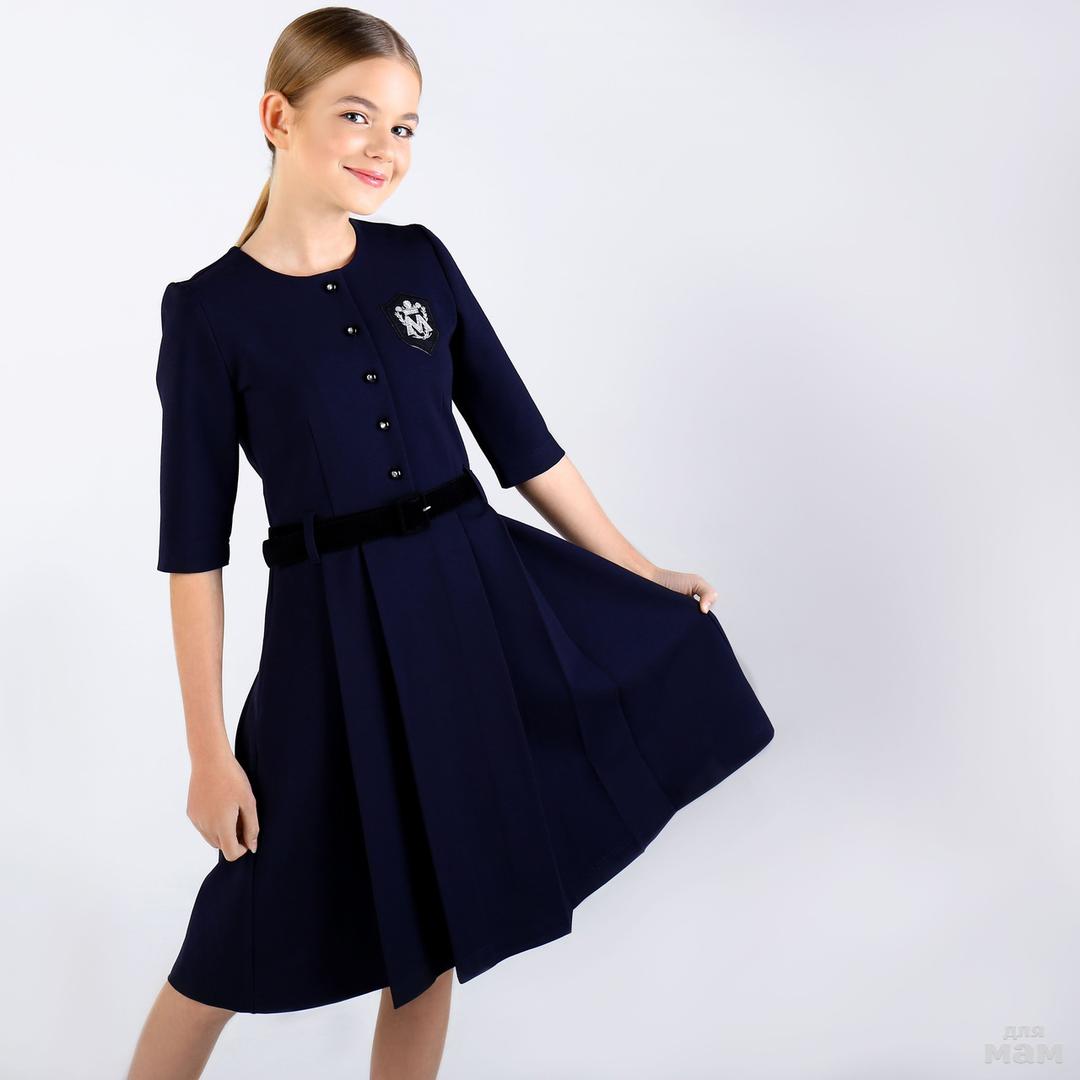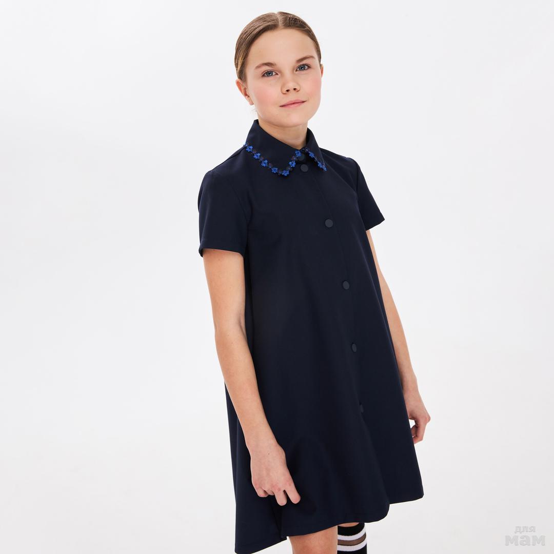 1618-2 платье текстиль, однотон, кружева-воротник синий 60% полиэстер, 35% вискоза, 5% эластан 122-140 2720+орг