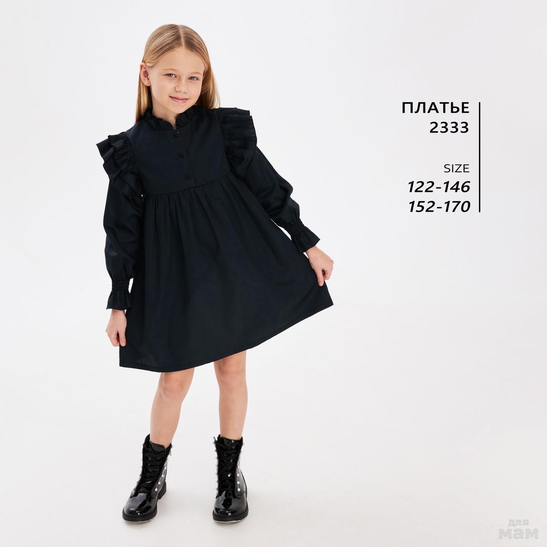 2332 платье текстиль, на кнопках, воротник тесьма кружевная синий 40% хлопок, 50% полиэстер, 10% эластан 122-140 2840+орг