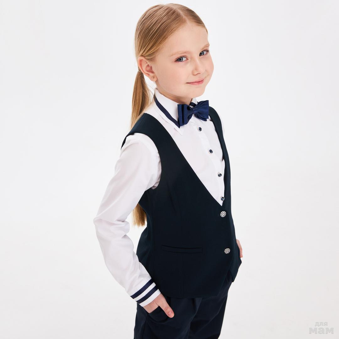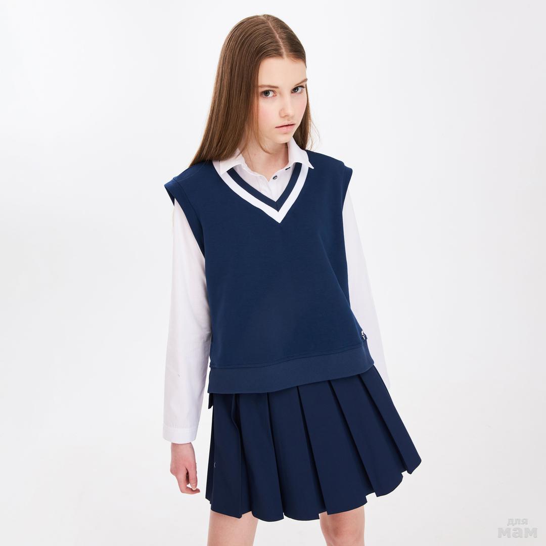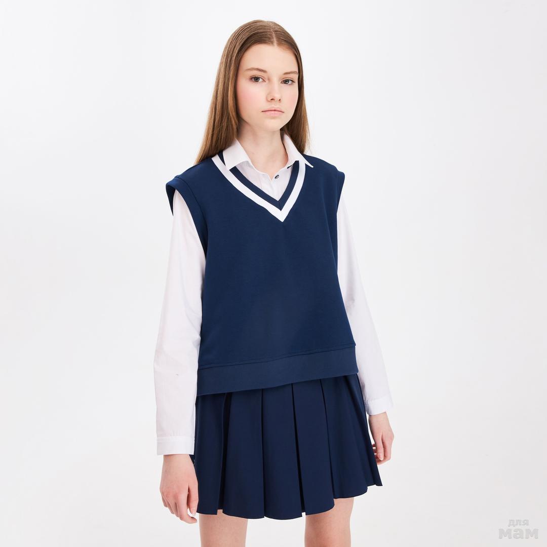 2364-2 жилет трикотаж, v-образный вырез синий 80% хлопок, 20 % полиэстер 122-140 1800 +орг