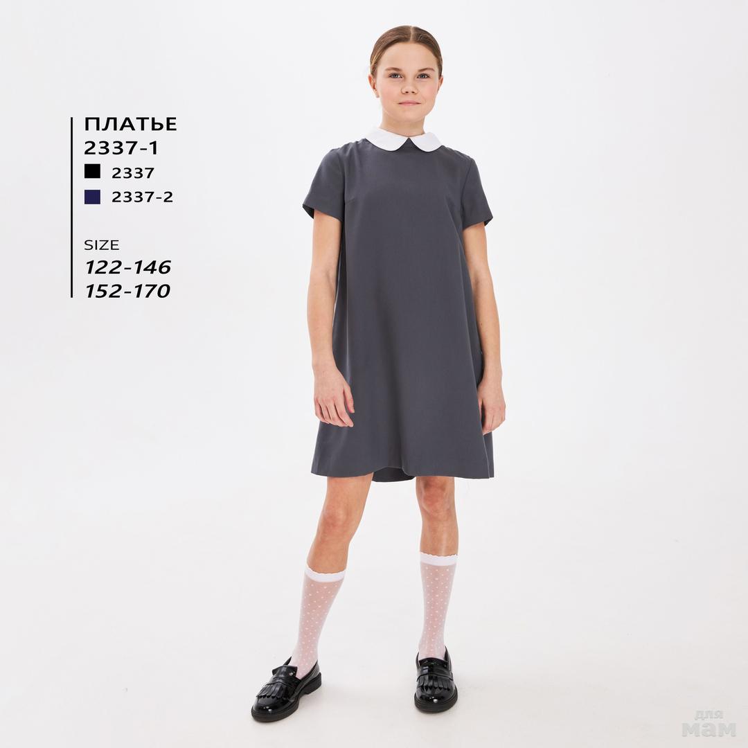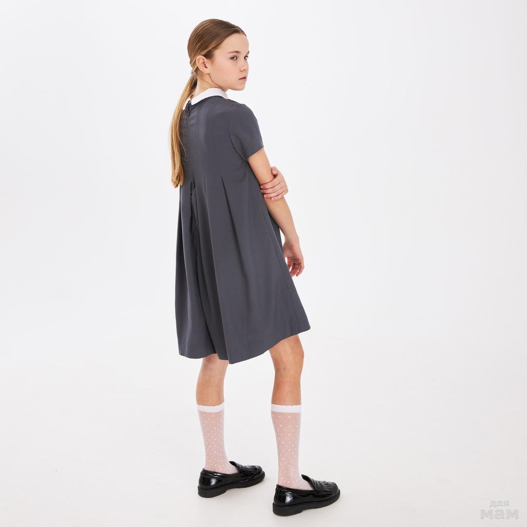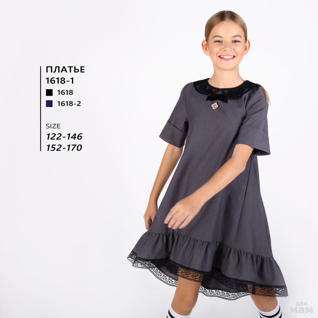 1618-1 платье текстиль, однотон, кружева-воротник серый 60% полиэстер, 35% вискоза, 5% эластан 122-140 2720+орг