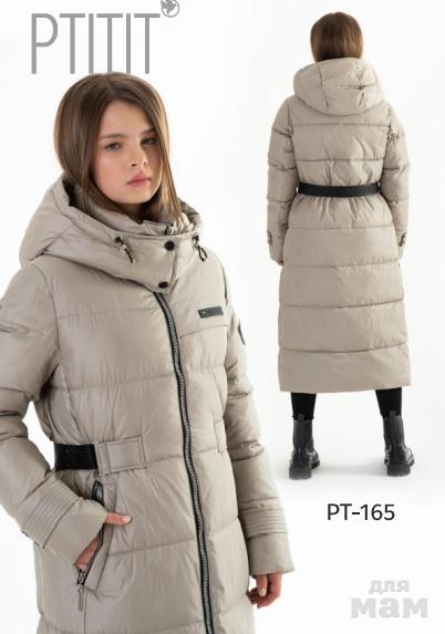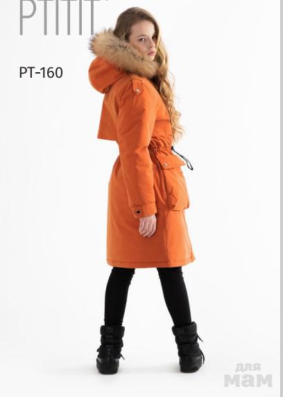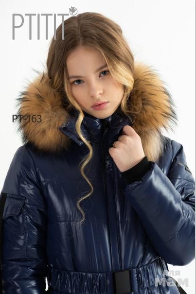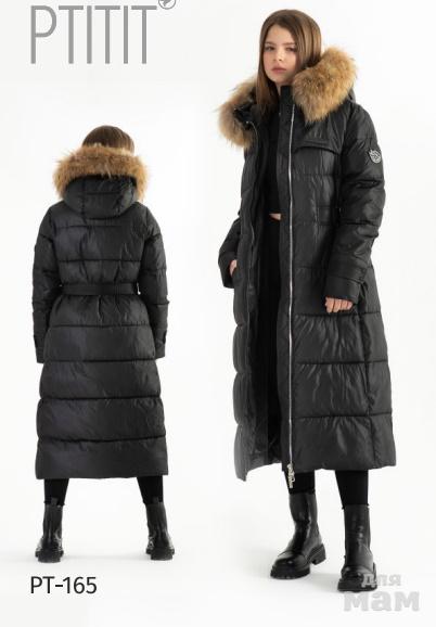 9. Удлиненное стеганное пальто для девочки. Прямого силуэта, с брендированным поясом, который красиво подчекнет талию. Двухзамковая молния, боковые карманы на молнии. Капюшон не съемный, с утяжкой. На рукавах акцентные паты на кнопках. Пальто можно заказать как с натуральным мехом енота, так и без меха. Утеплитель 300 ГР/М
