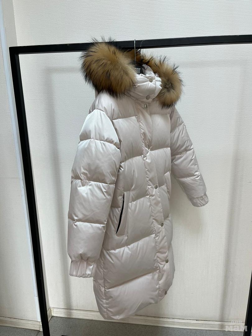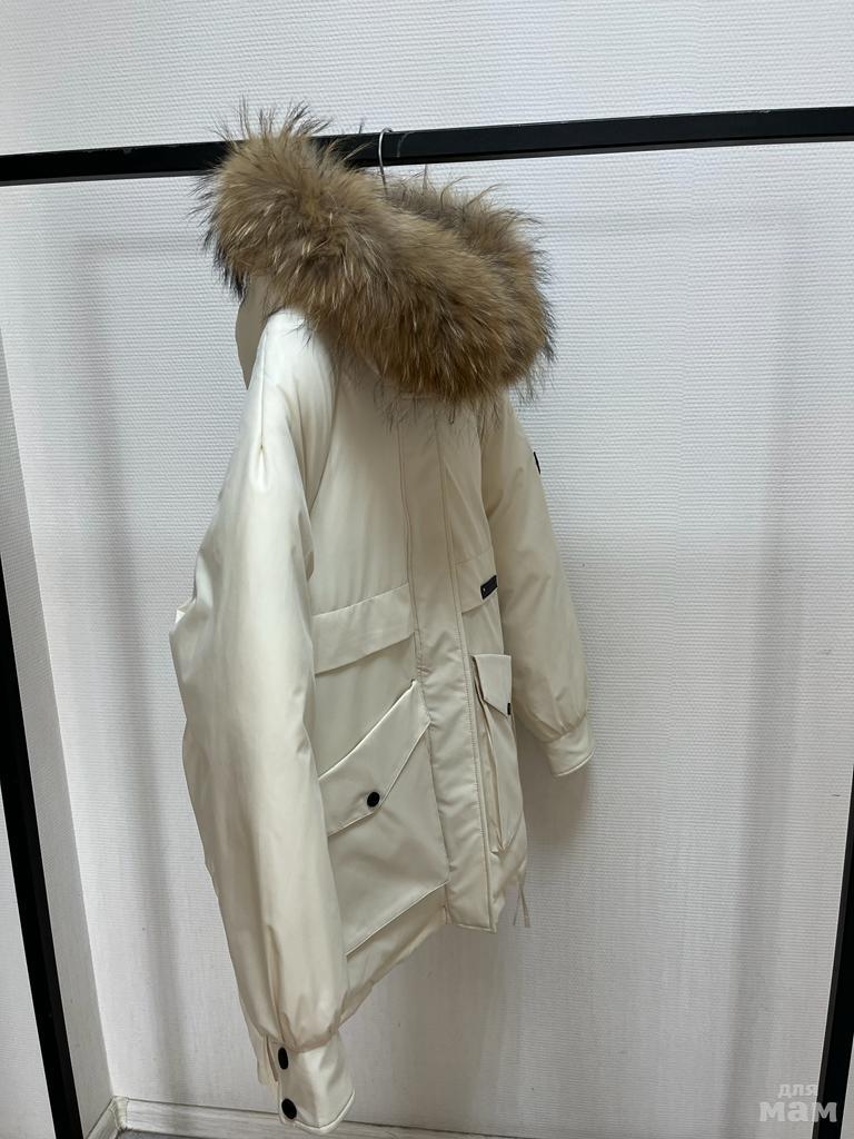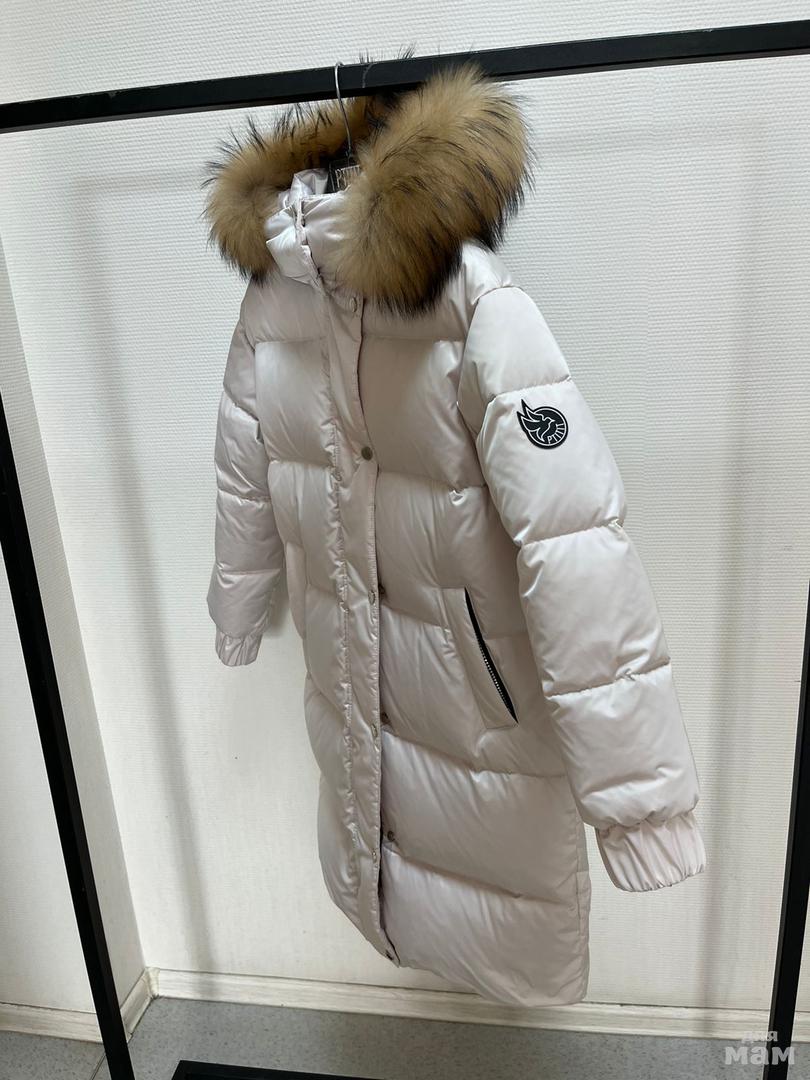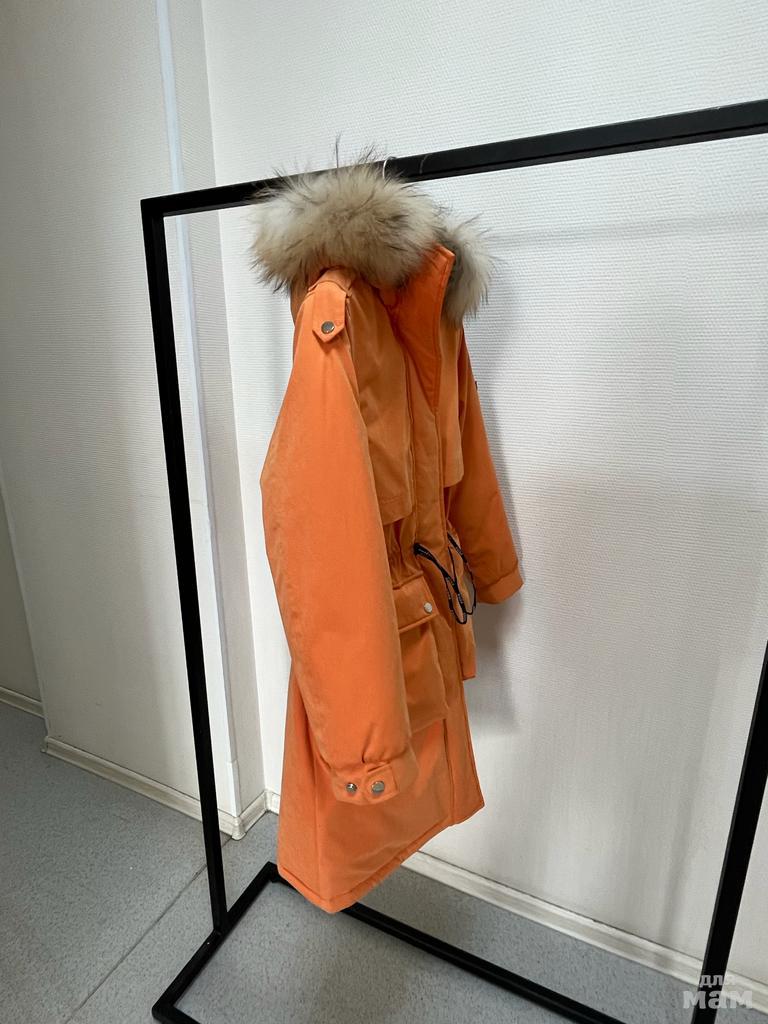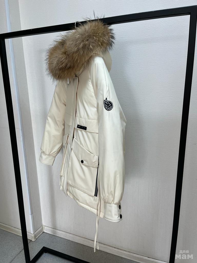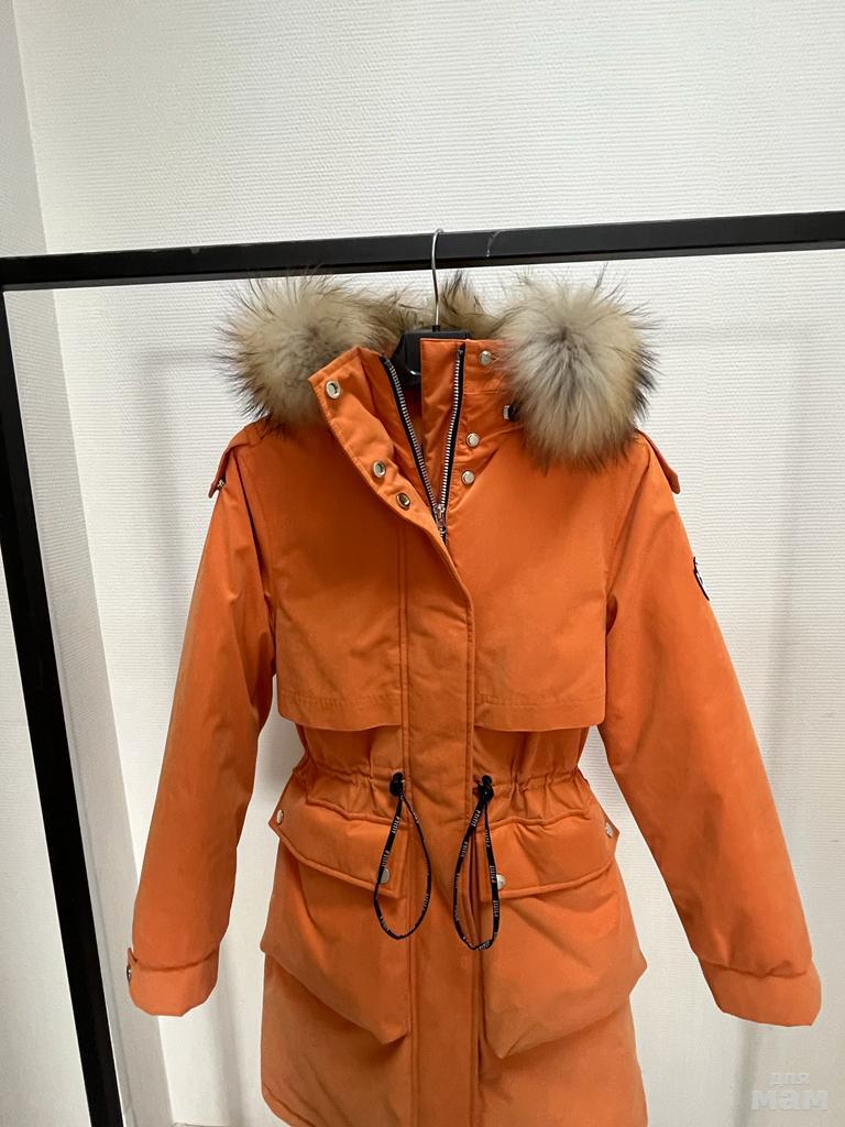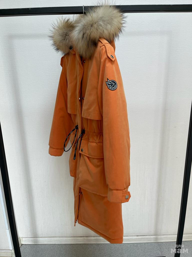 3. Удлиненное пальто, прямого силуэта с небольшим oversize. Ткань мягкая, не шуршит, непродуваемая и непромокаемая, имеет благородный блеск. Застегивается на молнию и кнопки. Спереди глубоки карманы с листочкой, застегивающиеся на тракторную молнию. Воротник стойка, и шикарный большой съемный капюшон с натуральным мехом енота. Утеплитель 300 ГР/М