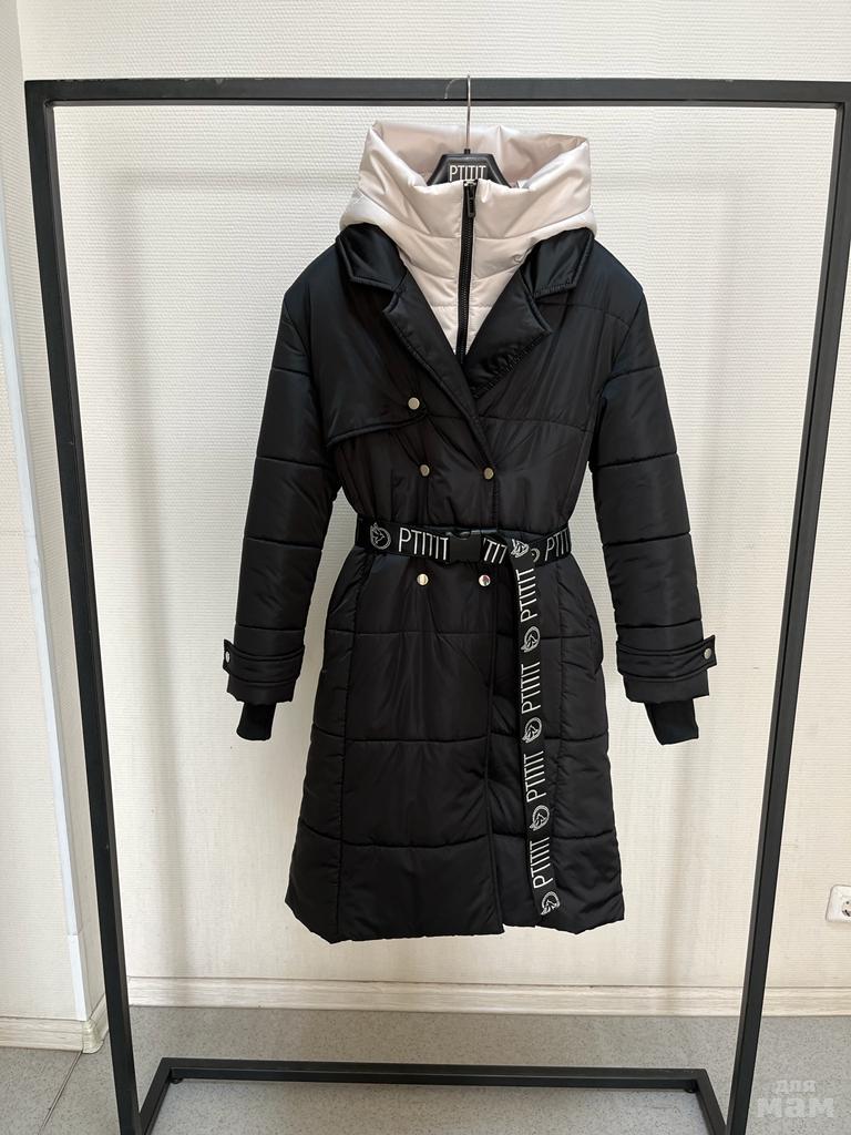 2. Пальто зимнее, стеганное, прямого силуэта с отложным воротником и съемный капюшоном с манишкой. Глубокие боковые карманы. Модель универсальная, можно носить как с капюшоном, так и без. Застегивается на молнию и кнопки, талию можно подчеркнуть брендированным ремнем на фастексе. Кокетки, акцентные паты на рукавах, контрастный капюшон придают изделию свою изюминку. Ткань мягкая, не шуршит, непродуваемая и непромокаемая, имеет благородный блеск. Утеплитель 300 ГР/М