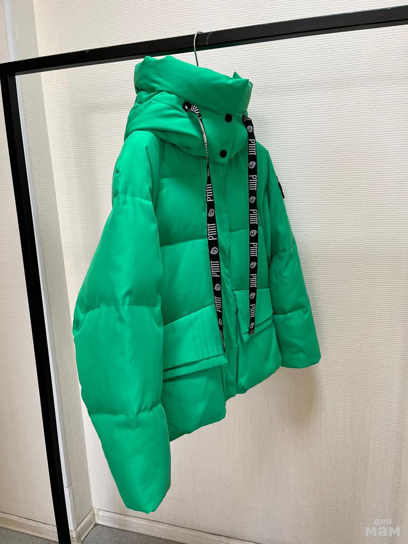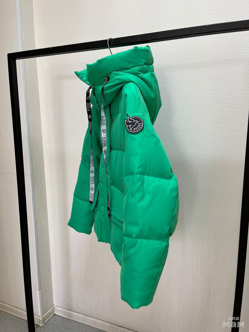 11. Пуховик модель - oversize. Тренд на долгие годы. Выполнен из мембранной ткани, непродуваемой и непромокаемой. Застегивается на молнию с ветрозащитной планкой на кнопках. Большой съемный капюшон утягивается на брендированный шнур. Большие карманы с дизайнерской листочкой. Утеплитель 300 ГР/М