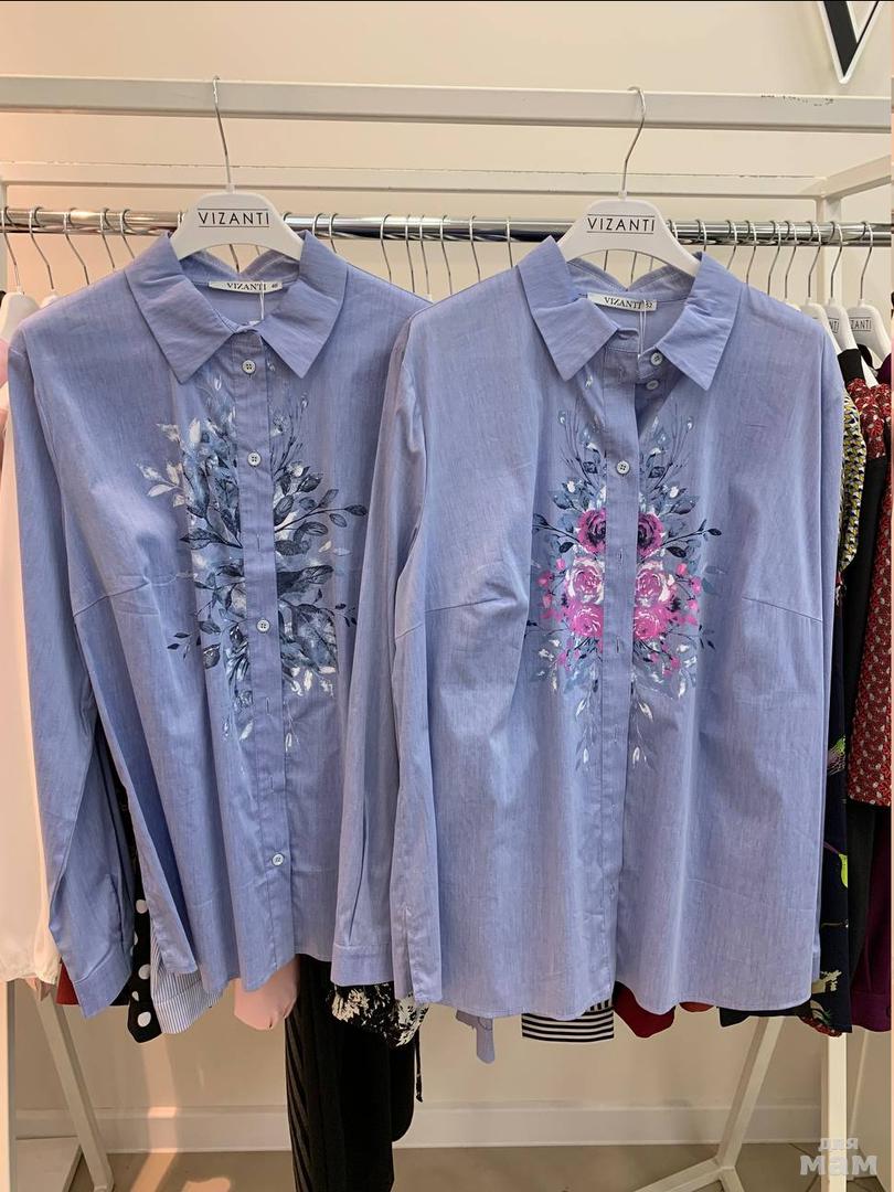 Блузка арт. 2066 рисунок розы - с 42 по 52 - 1450 руб. хлопок/эластан
