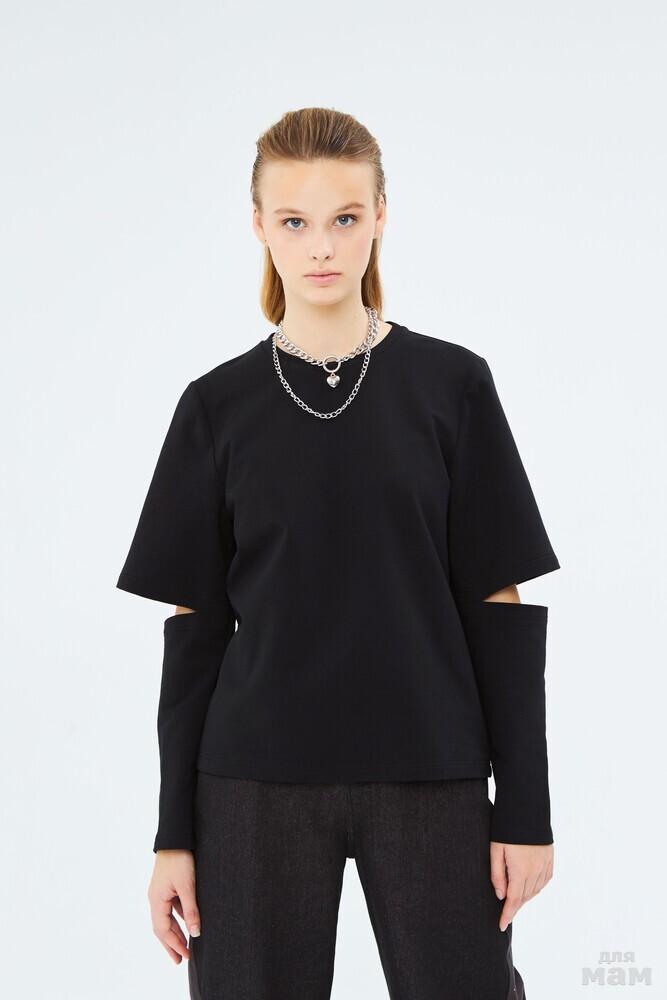 2441-1 блузка трикотаж,длинный рукав органза,высокий манжет черный 5% лайкра 5% вискоза 90% хлопок нет раз 122-140 цена 1750 +орг раз 146-170 цена 2140 +орг