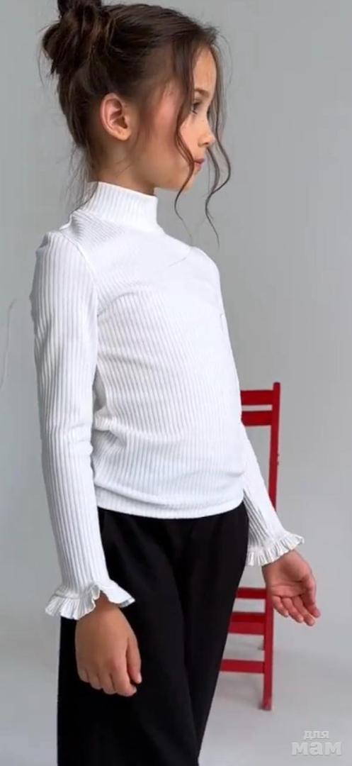 2440 блузка трикотаж, воротник стойка рюши,длинный рукав белый 5% лайкра 5% вискоза 90% хлопок нет раз 122-140 цена 1590 +орг раз 146-170 цена 1680 +орг