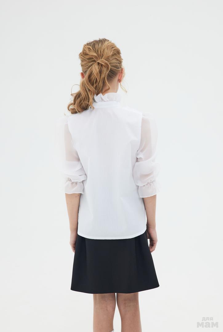 2441 блузка трикотаж,длинный рукав органза,высокий манжет белый 5% лайкра 5% вискоза 90% хлопок нет раз 122-140 цена 1750 +орг раз 146-170 цена 2140 +орг