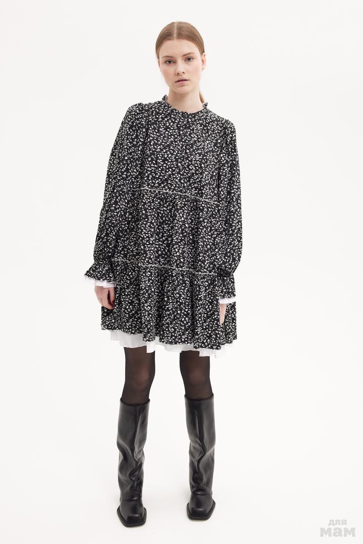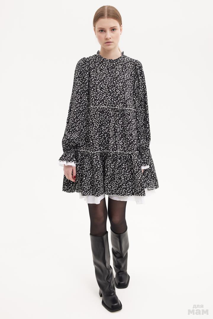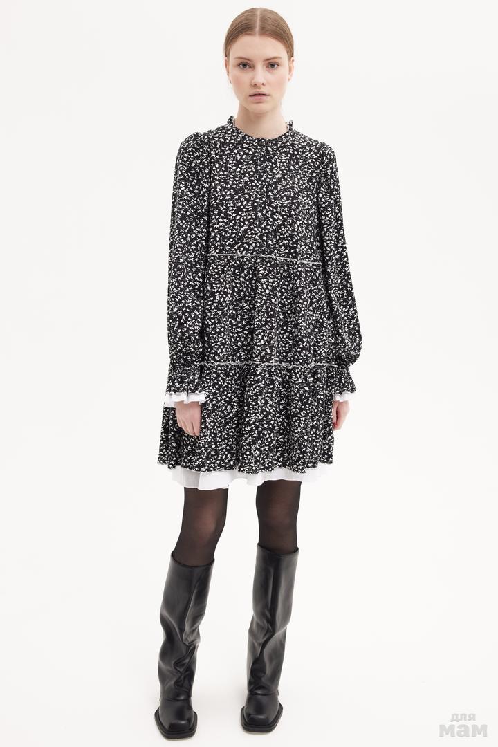 25163 Платье из вискозы с воланами,OVER черный/молочный 100% вискоза/ 100% хлопок 134-146 цена 3260+орг 152-164 170 /176 S-M цена 3320+орг