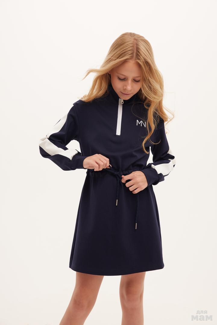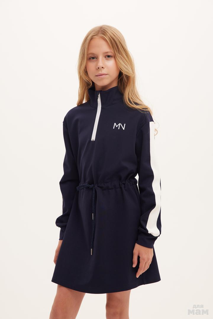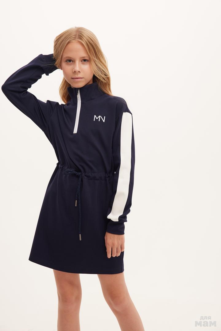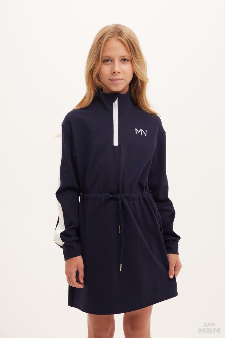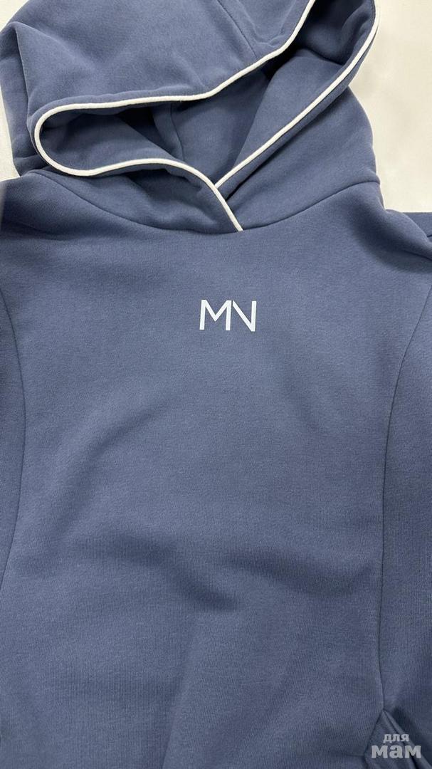 25185 Платье ,трикотаж велюр эффект,кант,двойной капюшон,лолготип MN индиго/молочный 80% хлопок,20% пэ 134-146 цена 4280 152-164 170 /176 S-M цена 4280+орг
