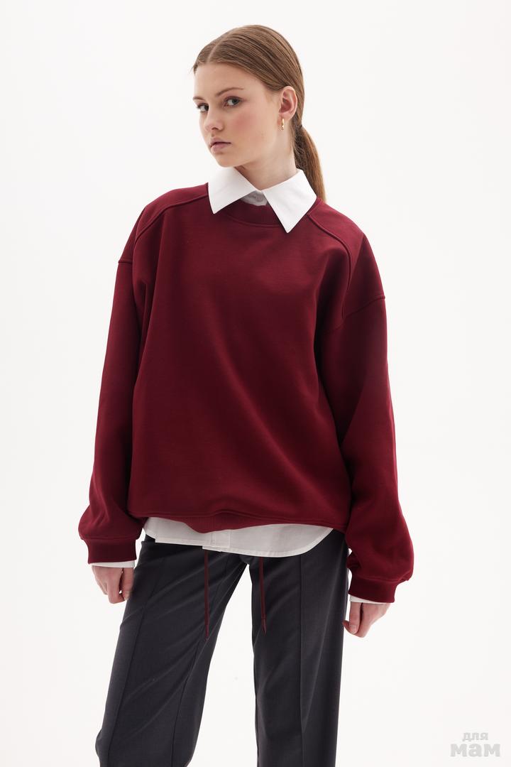 25147 Свитшот OVER,трикотаж начес American бордовый 80% хлопок,20% пэ 134-146 цена 3540+орг 152-164 170 /176 S-M цена 3540+орг