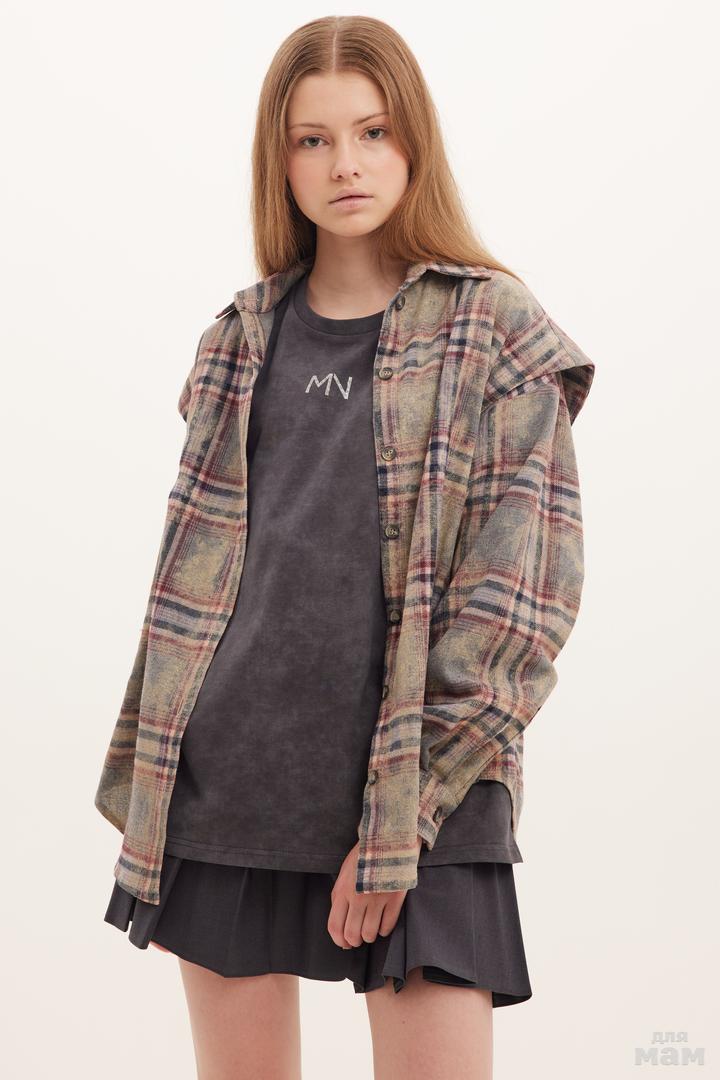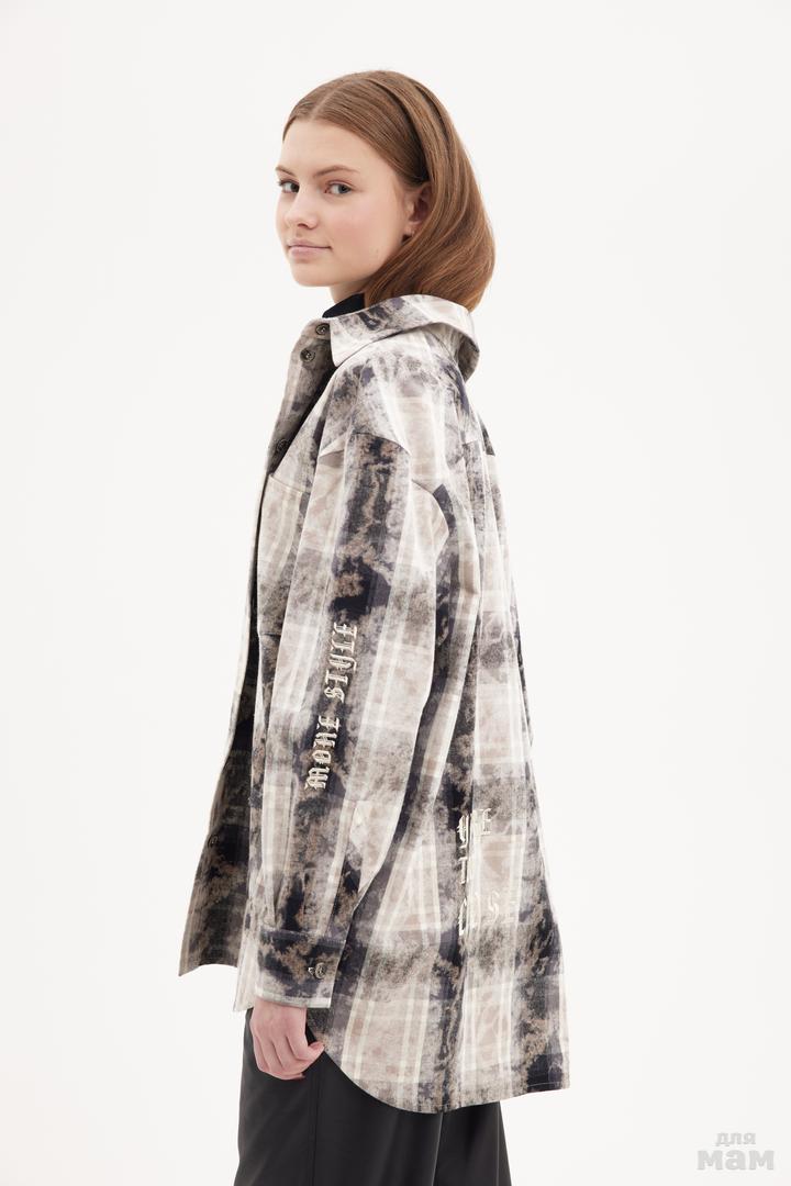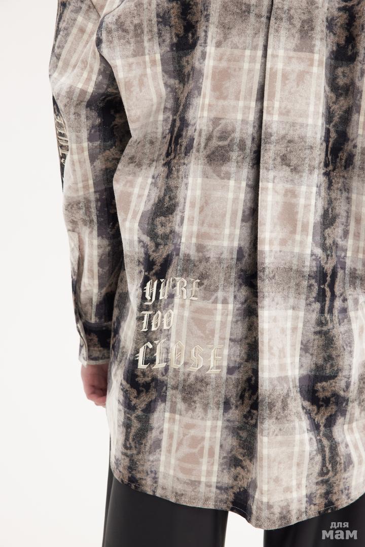 25158 Рубашка OVER,клетка с эффектом варки ,вышивка бежевый/коричневый 100% хлопок 152-164 170 /176 S-M цена 4950+орг