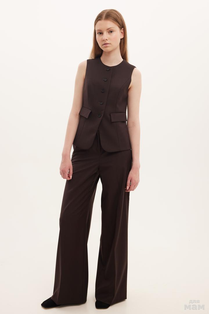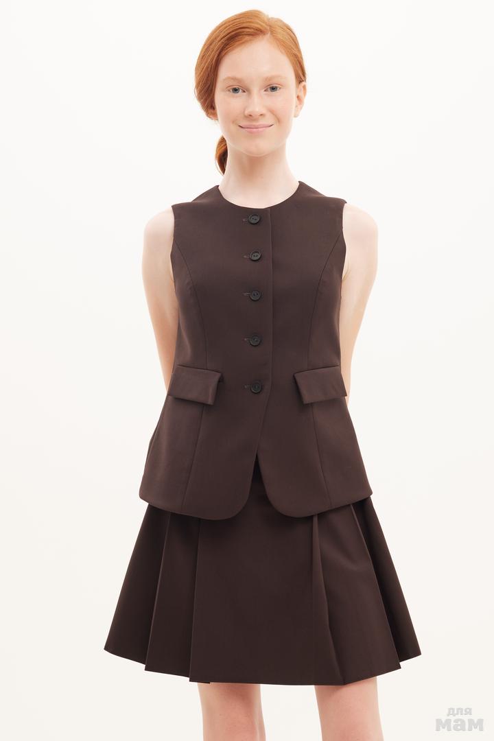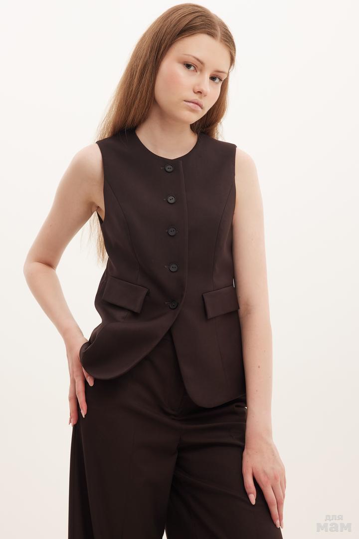 25123 Жилет текстиль,прорезиненные пуговицы шоколад 60% вискоза, 36% полиестр, 4 % эластан 152-164 170 /176 S-M цена 3540+орг