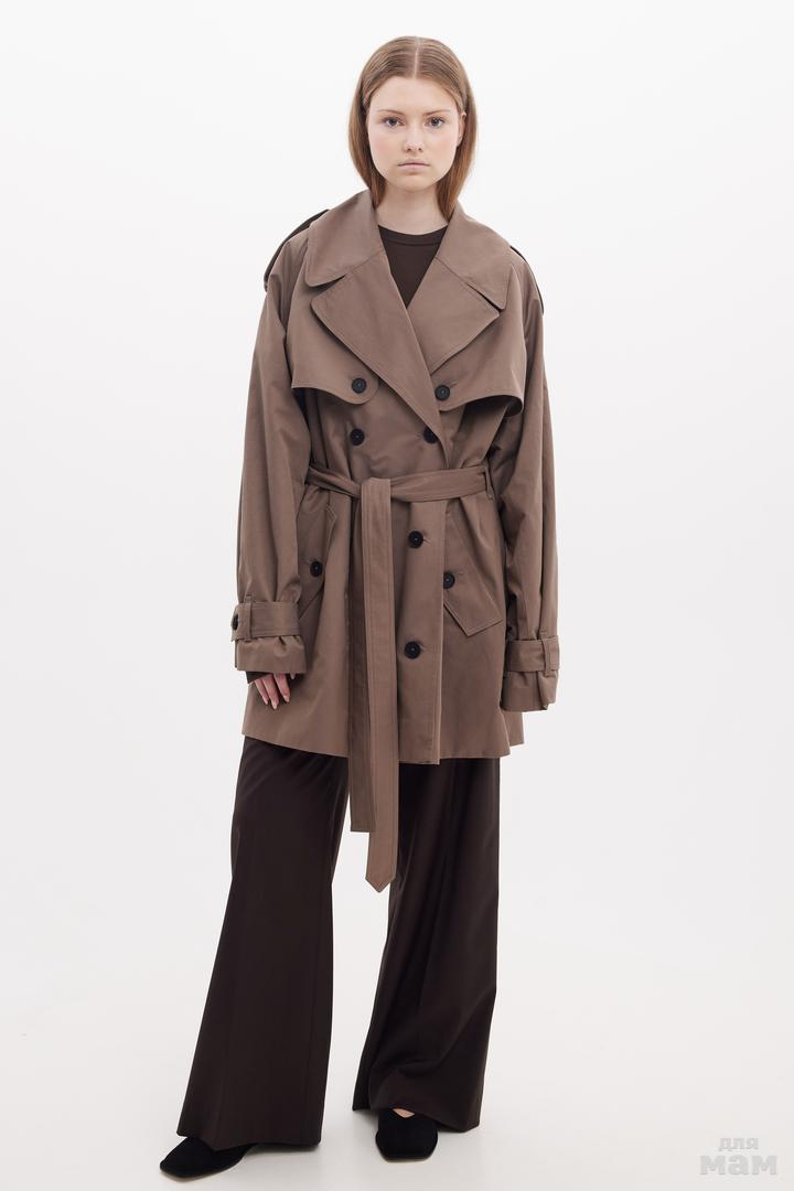 25171 Тренч,укороченный OVER,ХЛОПОК,,влагозащитная обработка ткани WR,пояс,шеврон MONE коричневый 100% хлопок 152-164 170 /176 S-M цена 9800+орг