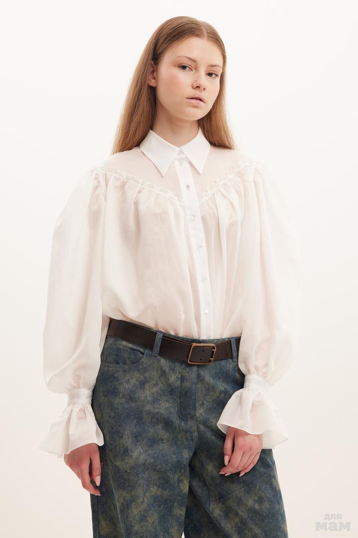 25157 Блузка батист, обьемные рукава ,оборка молочный батист,шелк 152-164 170 /176 S-M цена 3720+орг