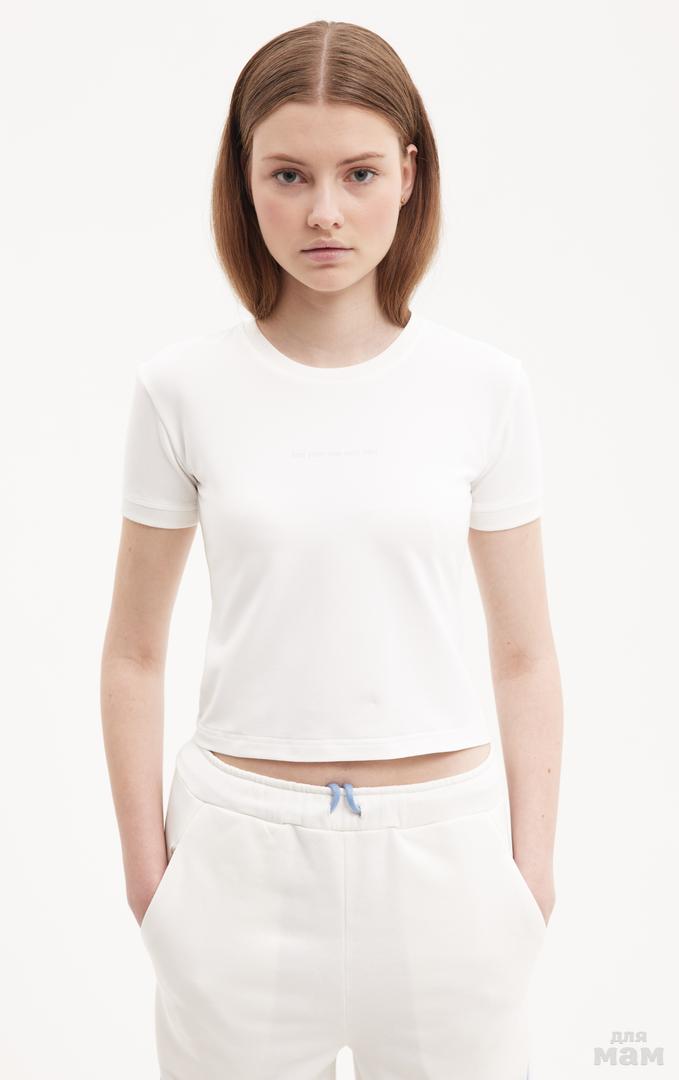 25137 Футболка трикотаж,укороченная надпись MN молочный/голубой 95% хлопок,5 % лайкра 134-146 цена 890+орг 152-164 170 /176 S-M цена 920+орг