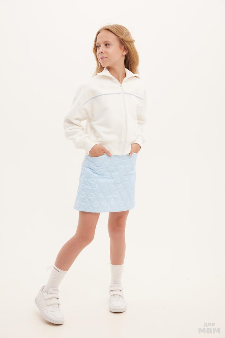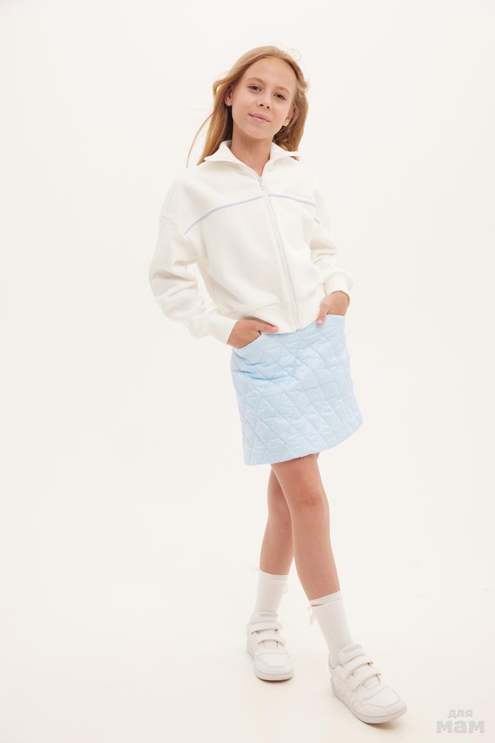 25141 Толстовка укороченная,трикотаж микроначес,кант ,воротник стойка молочный/голубой 80% хлопок,20% пэ 134-146 цена 3840+орг 152-164 170 /176 S-M цена 3840+орг