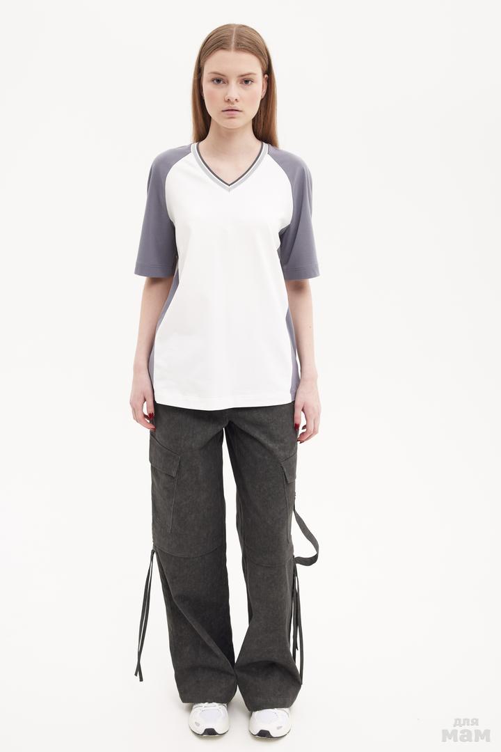 25136 Футболка трикотаж, V-образный ворот молочный/серый 95% хлопок,5 % лайкра 134-146 цена 2020+орг 152-164 170 /176 S-M цена 2060+орг