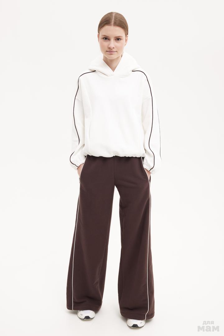 25142-1 Брюки ,трикотаж микроначес,кант,шнурок,кокетка шоколад/молочный 80% хлопок,20% пэ 134-146 цена 3800+орг 152-164 170 /176 S-M цена 3800 +орг