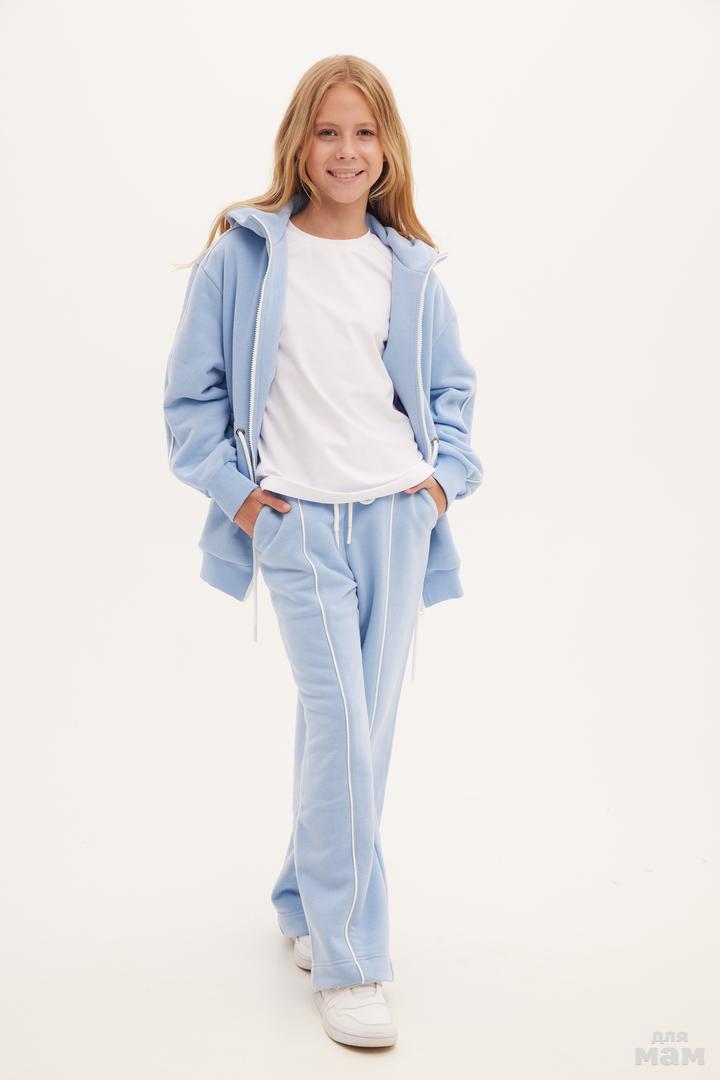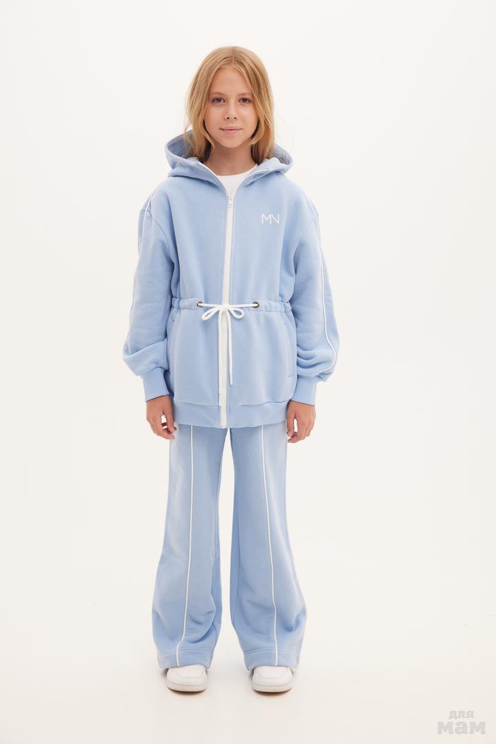 25139 Толстовка удлиненная,трикотаж микроначес,кант,капюшон голубой/молочный 80% хлопок,20% пэ 134-146 цена 4280+орг 152-164 170 /176 S-M цена 4280+орг