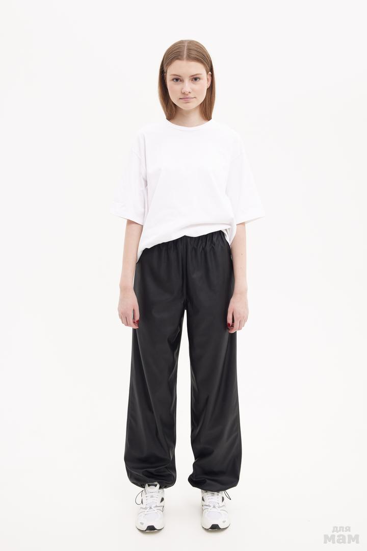 25156 Брюки джогеры ,эко кожа,шнурок, шеврон MONE черный 60% Полиэстер, 40% Полиуретан 134-146 цена 2840 152-164 170 /176 S-M цена 2940
