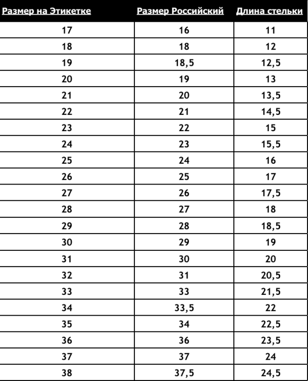 Размерная сетка. Девочки, по опыту обувь на полразмера маломерит. Лучше брать на размер больше