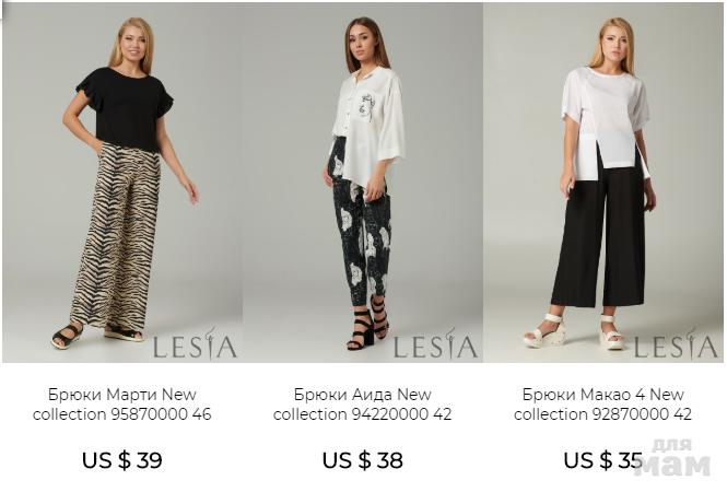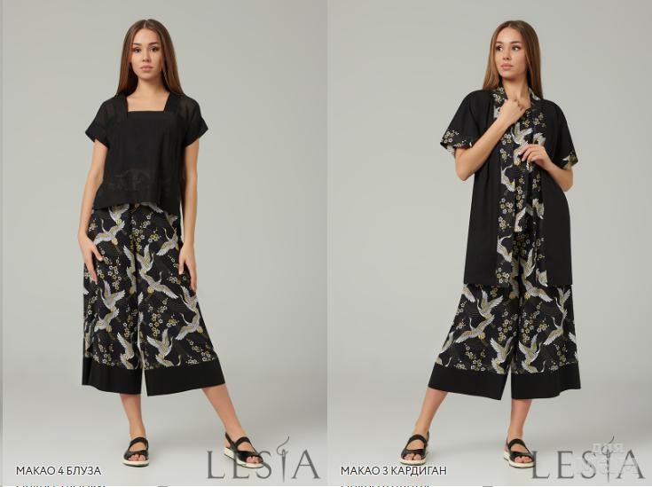 Коллекция сплетена из палитры эмоций, в которой сочетаются чувственность, страсть, элегантность и утонченность. Преобладающая гамма — благородные пастельные тона, с вкраплениями контрастных цветов. Так как бренд Lesia ориентирован на комфорт, в ассортименте много удобных моделей и фасонов – платья и юбки, жакеты и кардиганы, брюки, джемпера