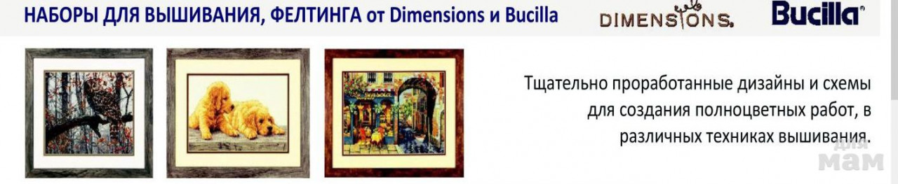 В ассортименте можно найти полную линейку наборов для рукоделия Dimensions, которые отличаются высоким качеством нитей и тщательно проработанными схемами.