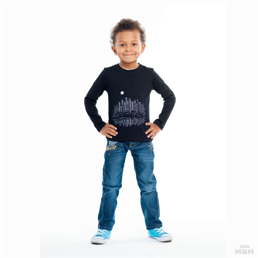 лонгслив Город Черная футболка на мальчика с длинным рукавом. Загадочный рисунок ночного города гармонирует с любой одеждой. Можно носить с джинсами, с брюками и можно надевать под детский пиджак. 350р р 98-104