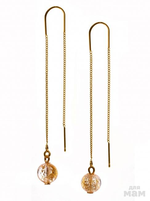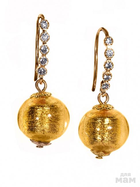 Серьги Bottega Murano с бусиной из муранского стекла с сусальным серебром или золотом на швензах-крючках со стразами Сваровски 463р