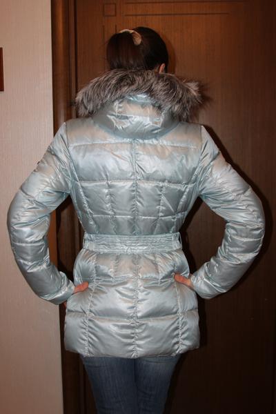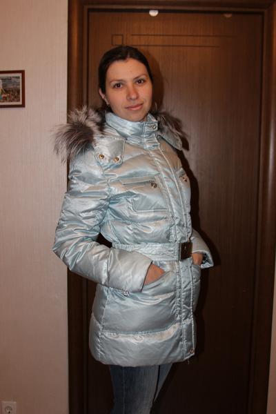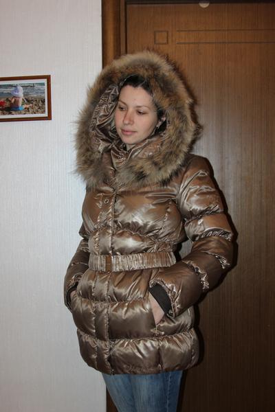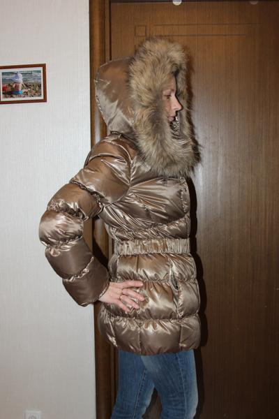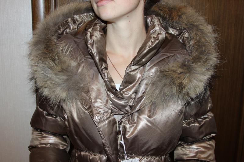 Женское пуховое пальто до середины бедра. Отстегивающийся капюшон с мехом чернобурки.