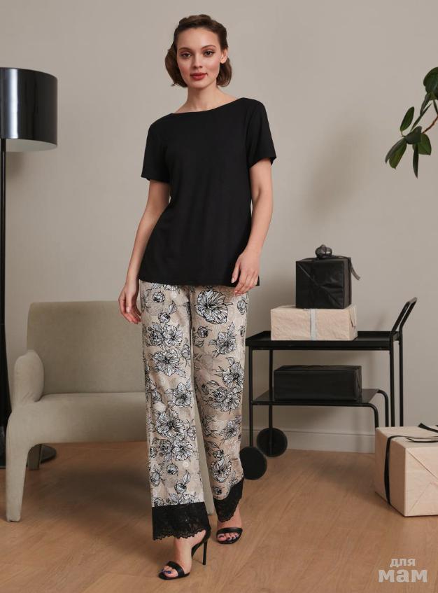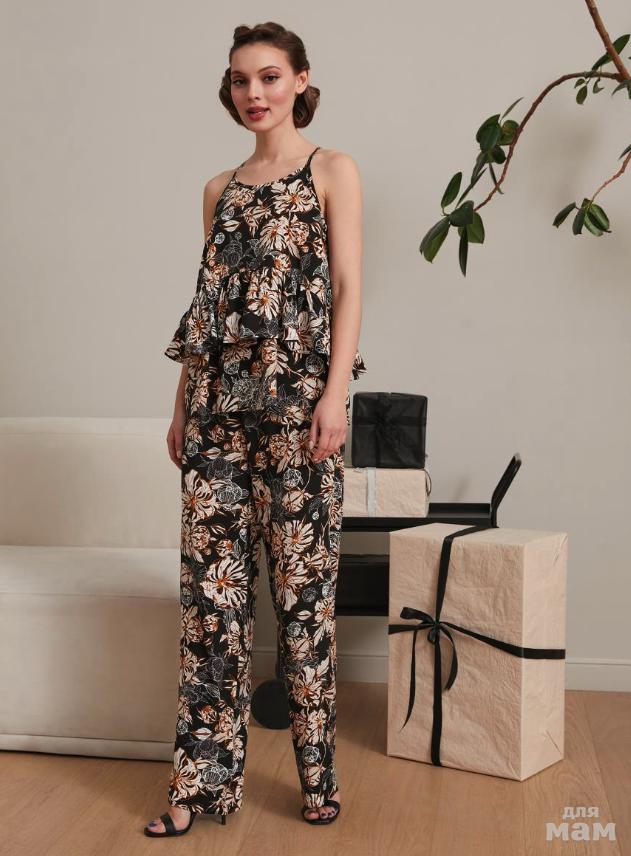 98. Комплект: блузка-топ, брюки жен Mia Cara SS22WW302 Mademoiselle Juju черный/цветы-1500р+%