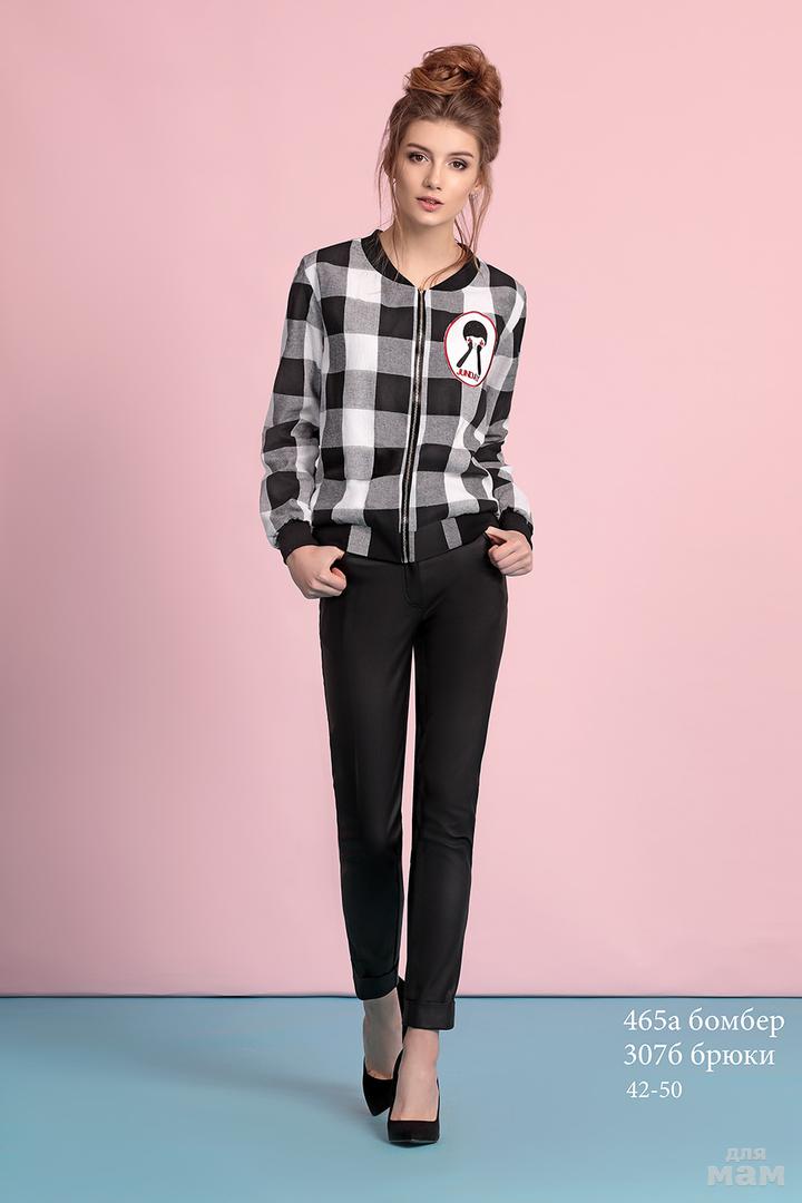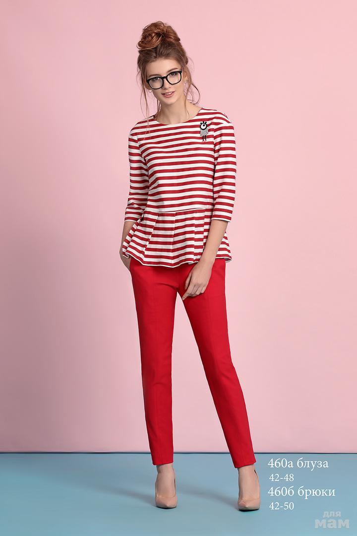 Брюки женские, зауженные к низу, выполнены из эластичного брючного крепа. Карманы в боковых швах. На боковых швах отделка- лампасы. Состав: ПЭ 100%