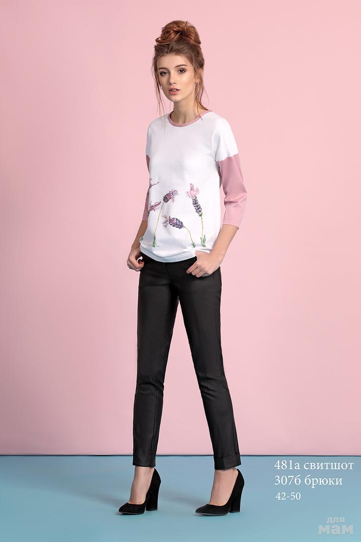 18. Свитшот женский, прямого силуэта со спущенной линией плеча. Горловина круглая . Горловина , рукав и низ изделия подвернут на изнанку. На переде дизайнерский принт “лаванды” и декор ручной работы Состав: хлопок 100%