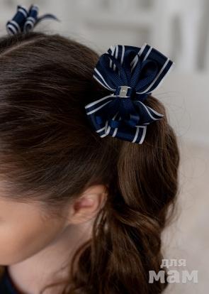 Изящный бантик на резинке, отличный аксессуар для украшения прически школьницы. Длина банта 12 см.