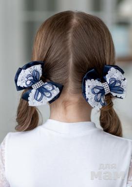 110. Бант О*фелия т-синий и белый 1шт- 110р