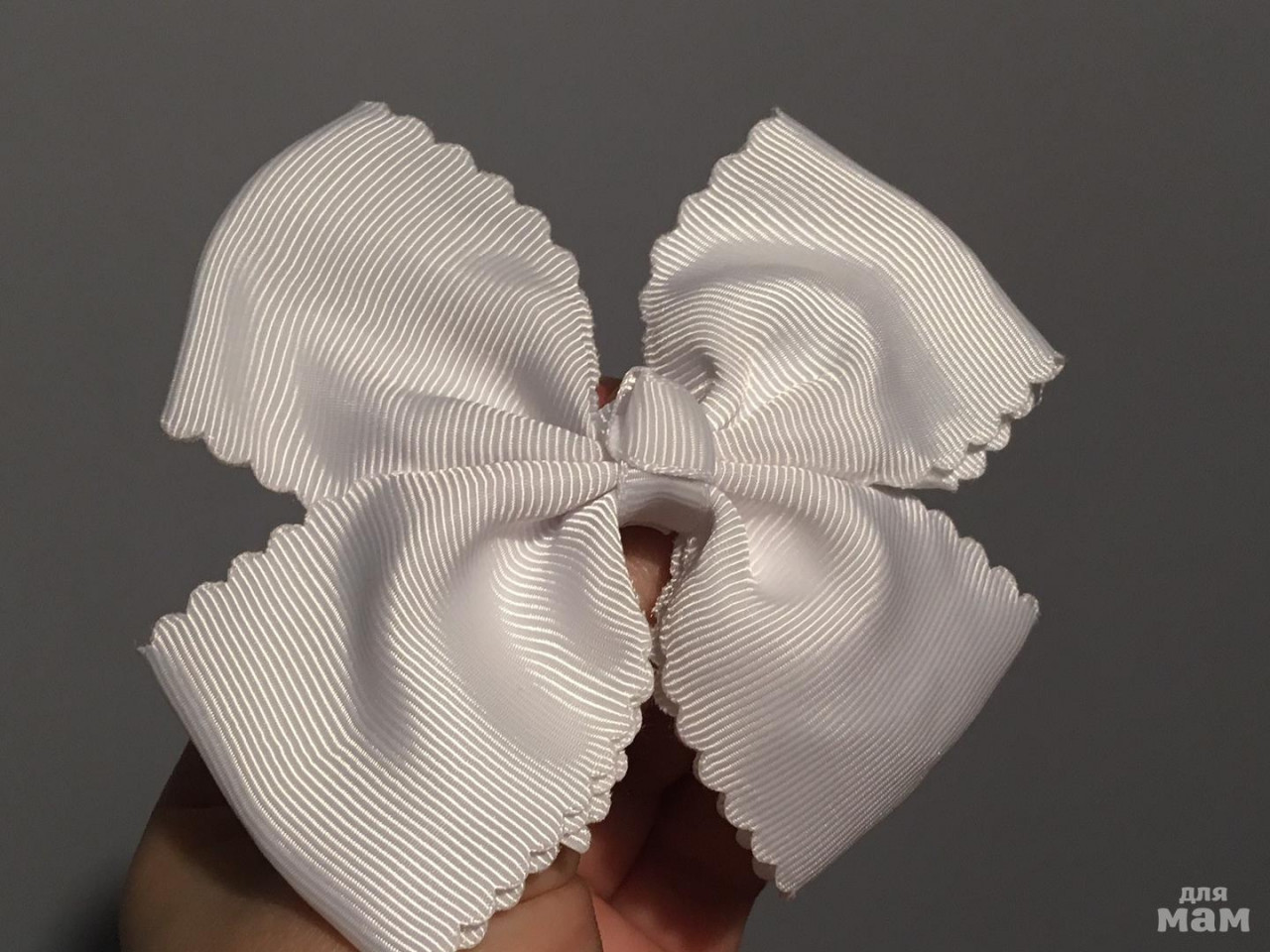 Изящный бантик на резинке, отличный аксессуар для украшения прически школьницы. Длина банта 12 см.
