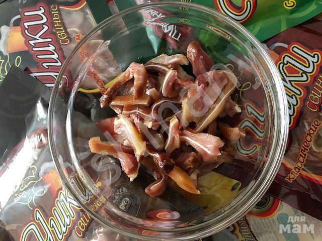 77. Мясные чипсы из свинины вялено копченые 500 г