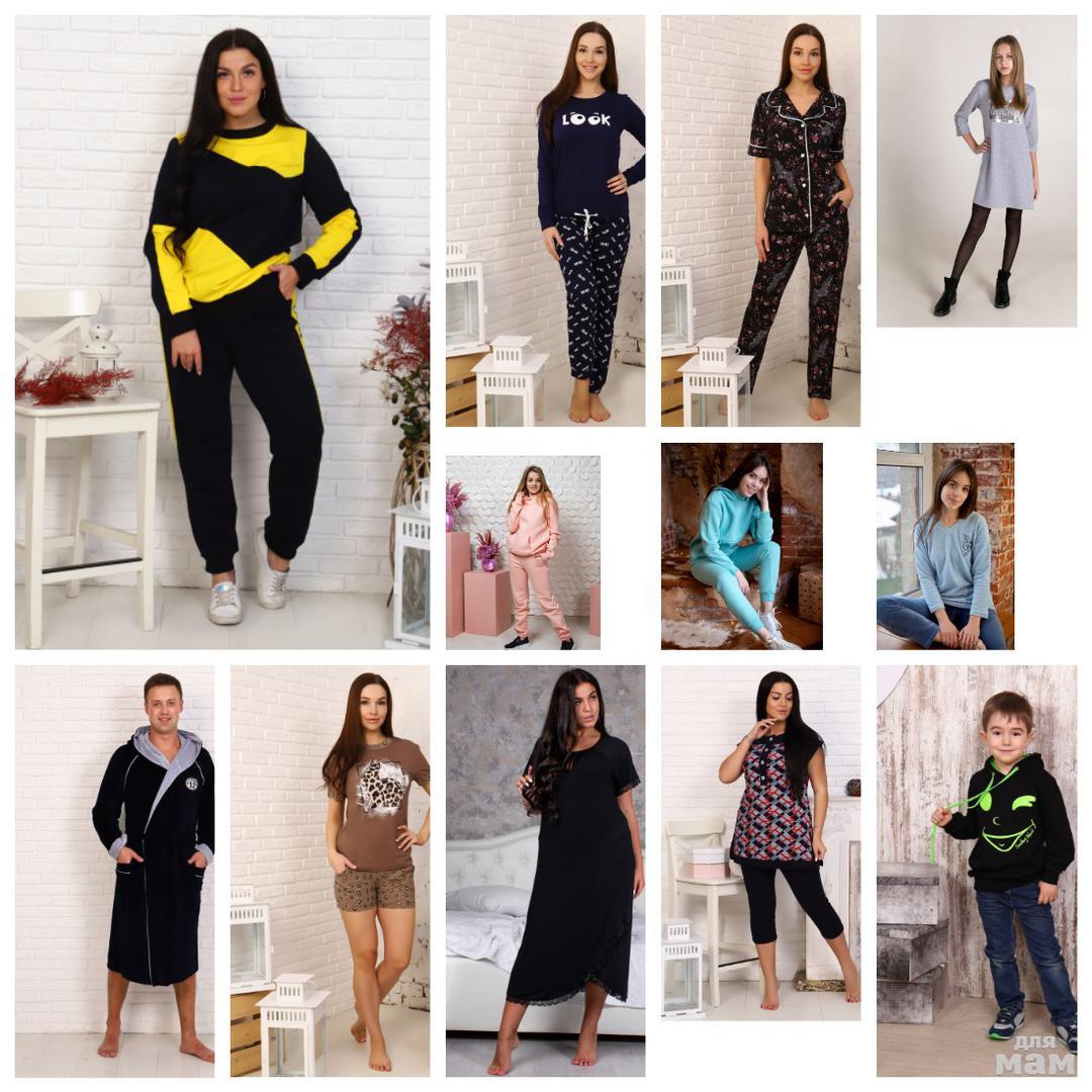 В каталоге представлен широкий ассортимент ночных сорочек, пеньюаров, футболок, маек, блузок, жилетов, платьев для дома, молодежных халатов. Для активного отдыха мы можем предложить недорогие спортивные костюмы с брюками, бриджами и шортами, джемпера, кофты.