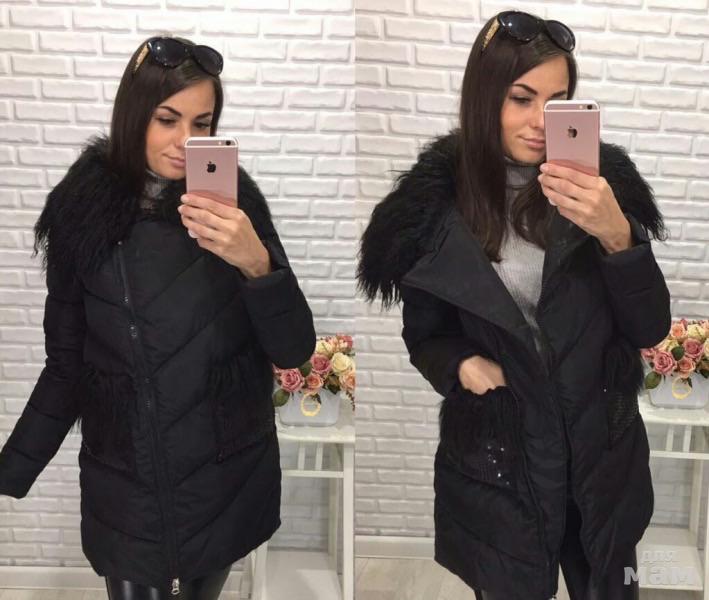 стеганое пальто с ангорской ( карман и ворот) 1500+% 42,44,46,48 цвета Бордо серый черный