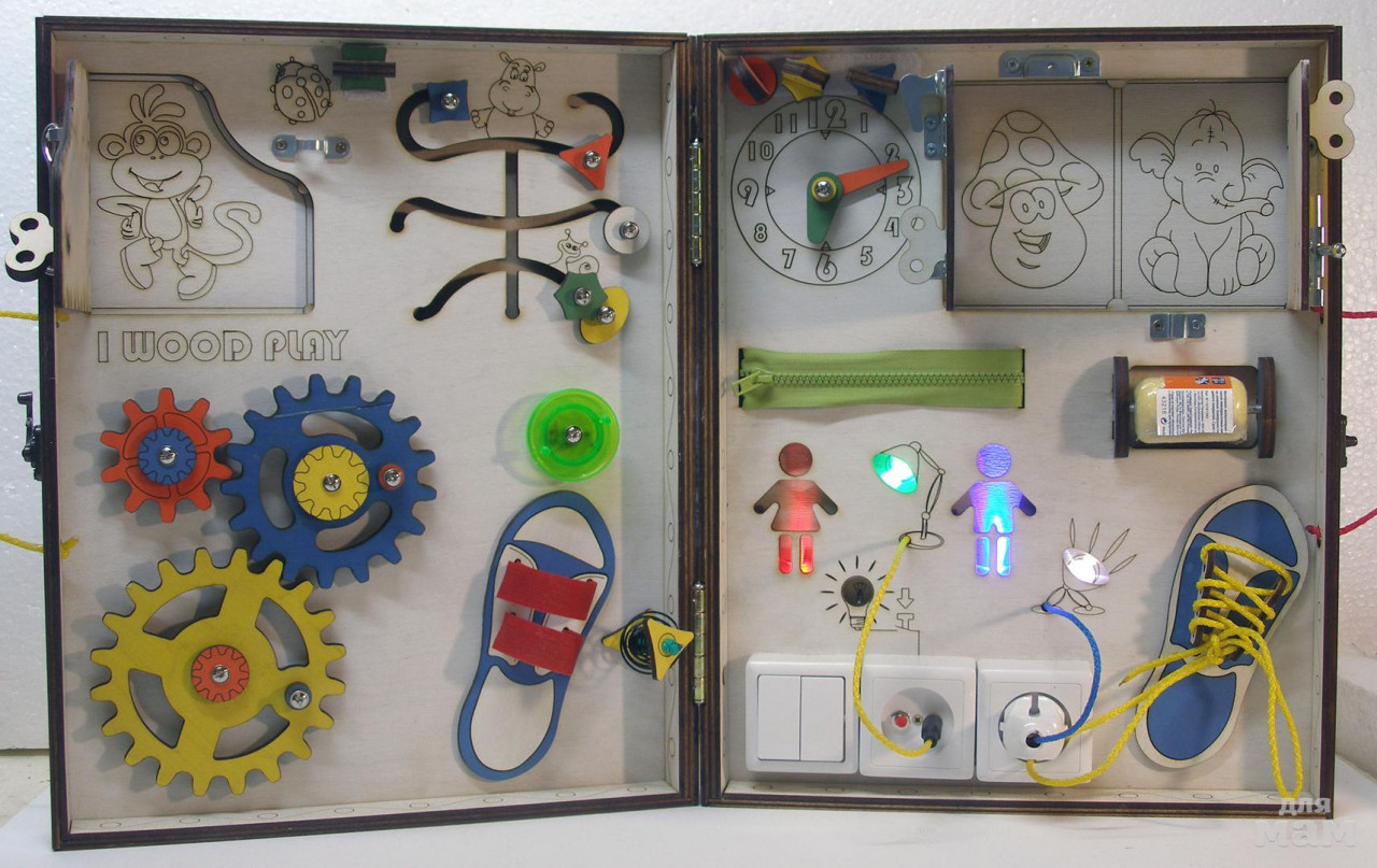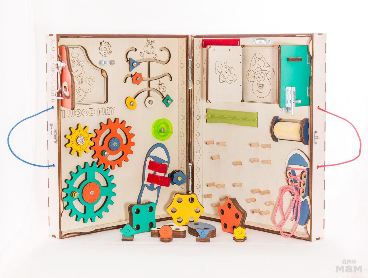 Экологичные и безопасные материалы, деревянная основа – явное преимущество перед китайскими пластмассовыми игрушками. Бизиборд отлично заменяет телевизор, планшет и компьютер