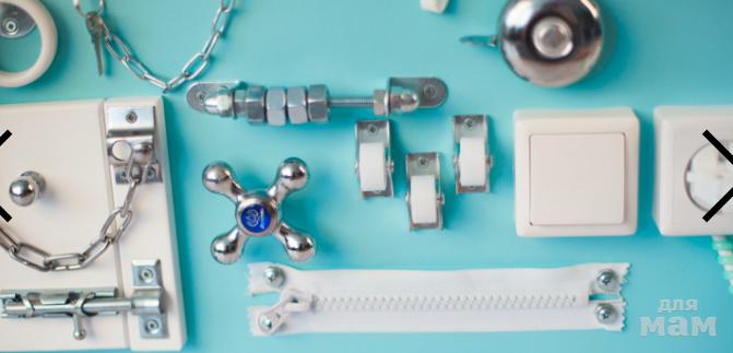 Малыш учится взаимодействовать с повседневными предметами: молнии, выключатели, ручки, шнурки, ящички и еще куча всего