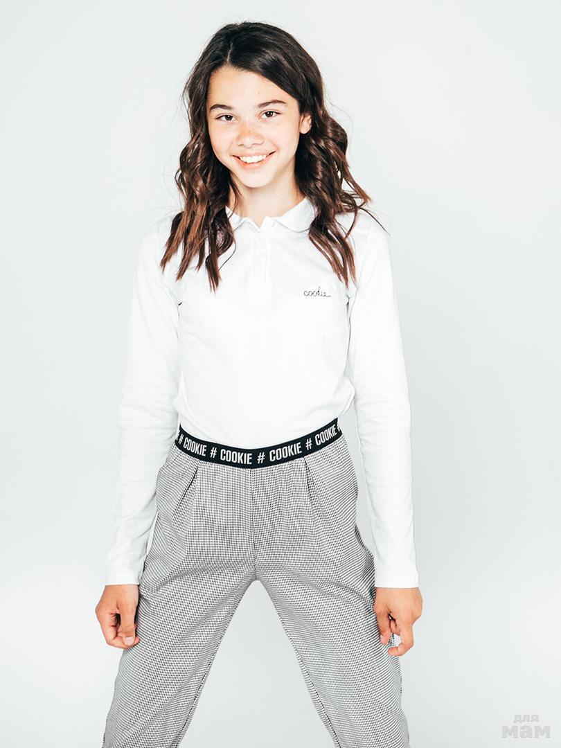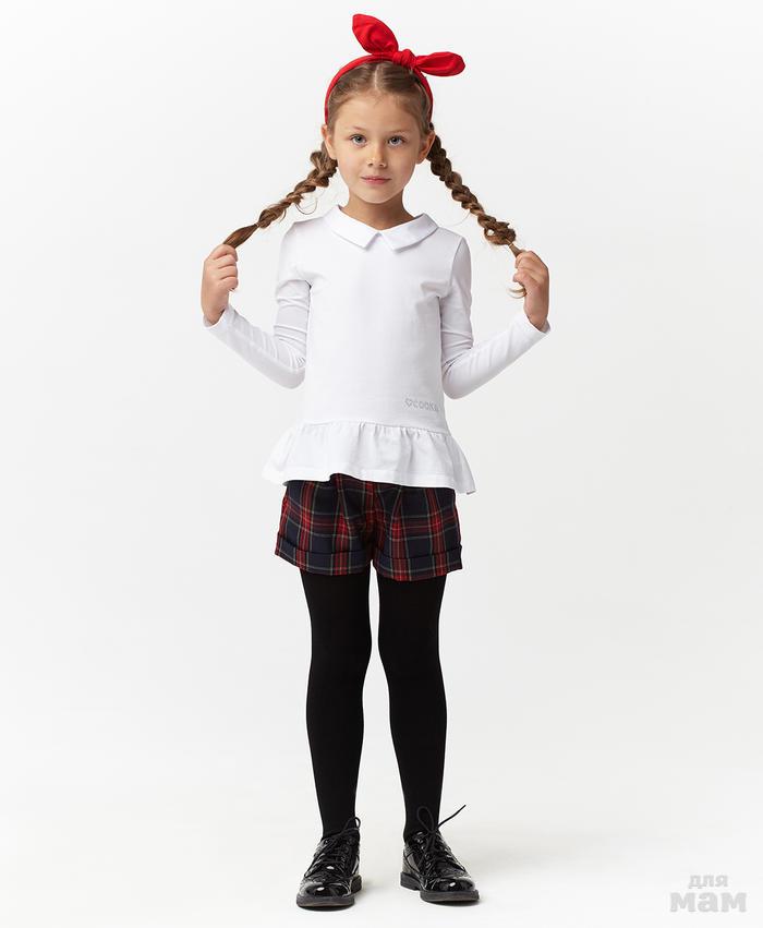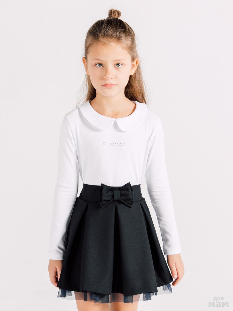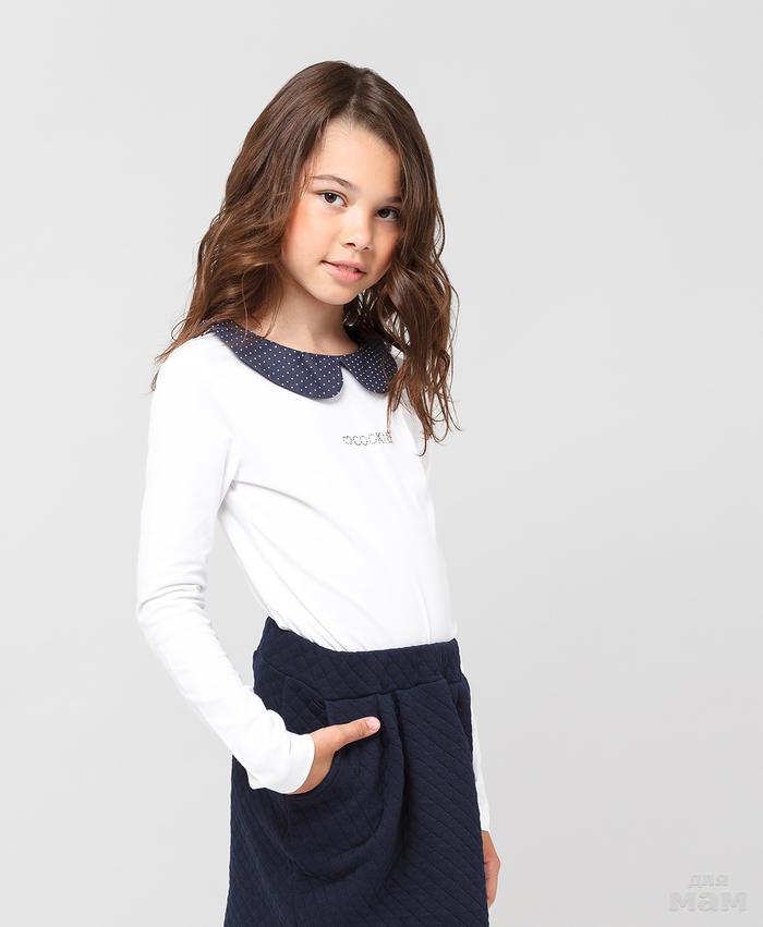 9. Лонгслив для девочки белого цвета из хлопковой ткани - пике арт. GTS338-1 цена 1120р