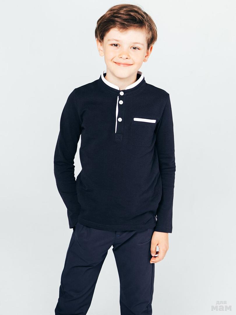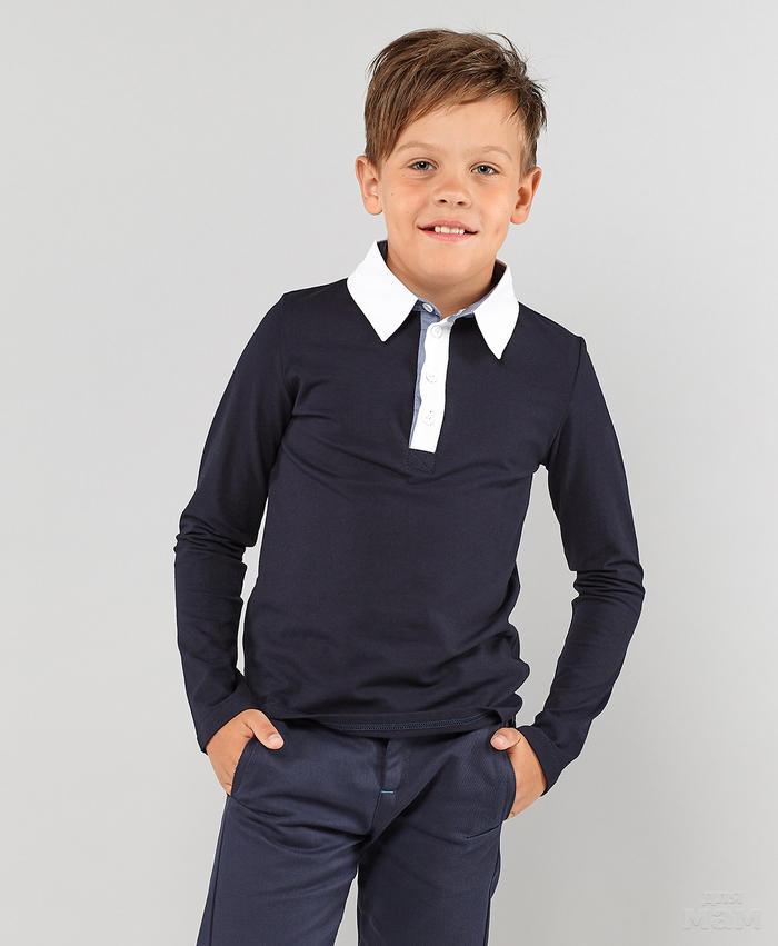 Поло для мальчика синего цвета из хлопковой ткани - пике, обладающей отличными качественными характеристиками. Модель застёгивается на три пуговицы у горловины, воротничок - стойка, рукав длинный, дополнено накладным нагрудным карманом. Поло из хлопкового пике – неотъемлемая часть гардероба юного модника.