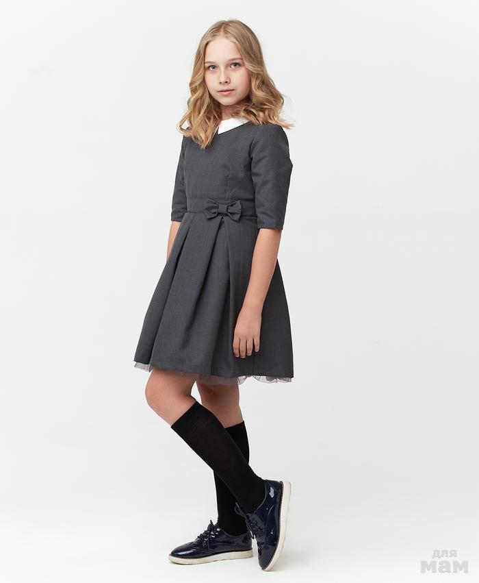 Платье из высококачественного полушерстяного материала синего цвета полностью на подкладке из хлопка белого цвета. Платье полуприлегающего силуэта с белым воротничком из текстильного материала, рукав 3/4 (на подкладке), не колется. Для фиксирования на талии, платье дополнено полупоясом, украшенным бантом-бабочкой. Застёгивается платье при помощи застёжки - молнии. По низу юбки подкладочная ткань дополнена оборкой из фатина. Платье предназначено для повседневной носки и в качестве школьной формы. Можно стирать в стиральной машине, t воды 30 градусов. Платье не линяет и не окрашивает воротник и подкладку.