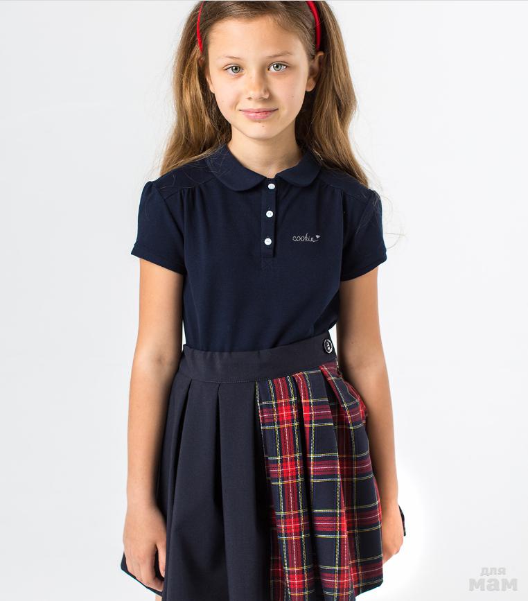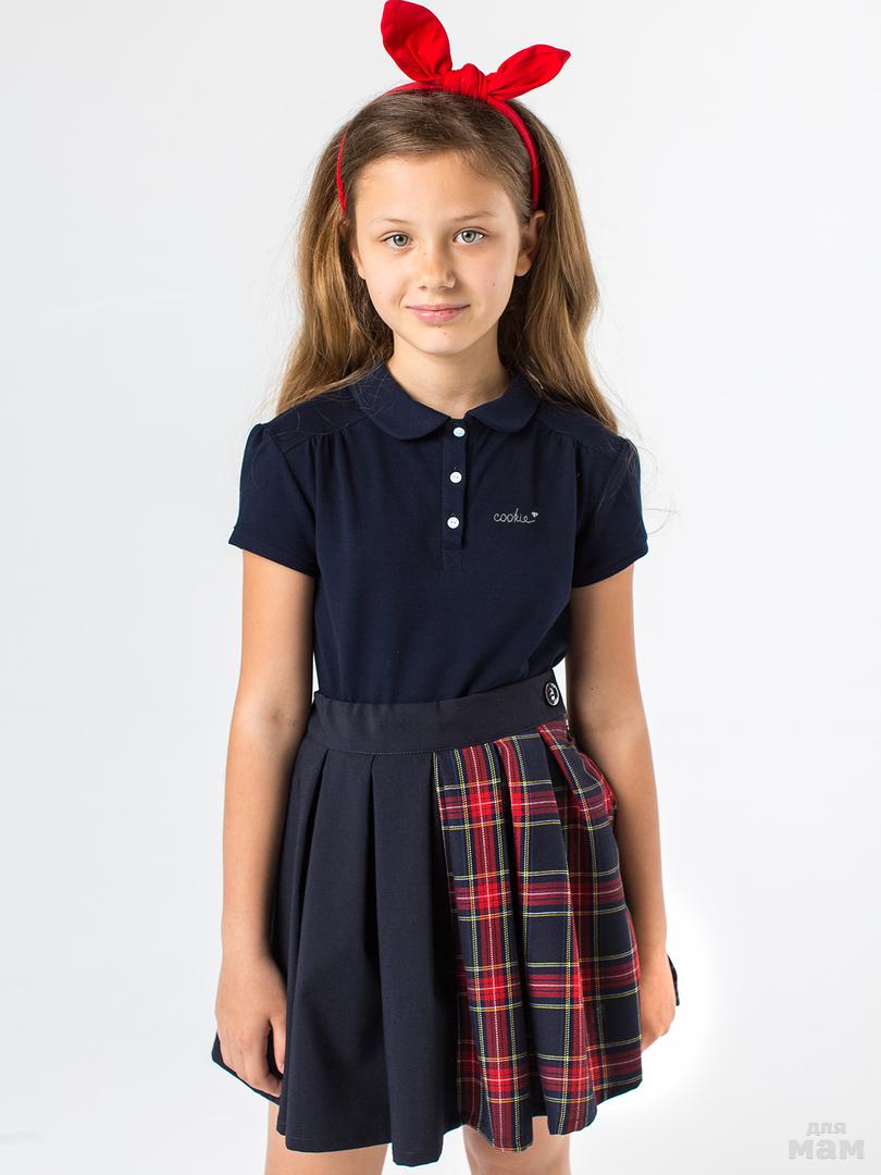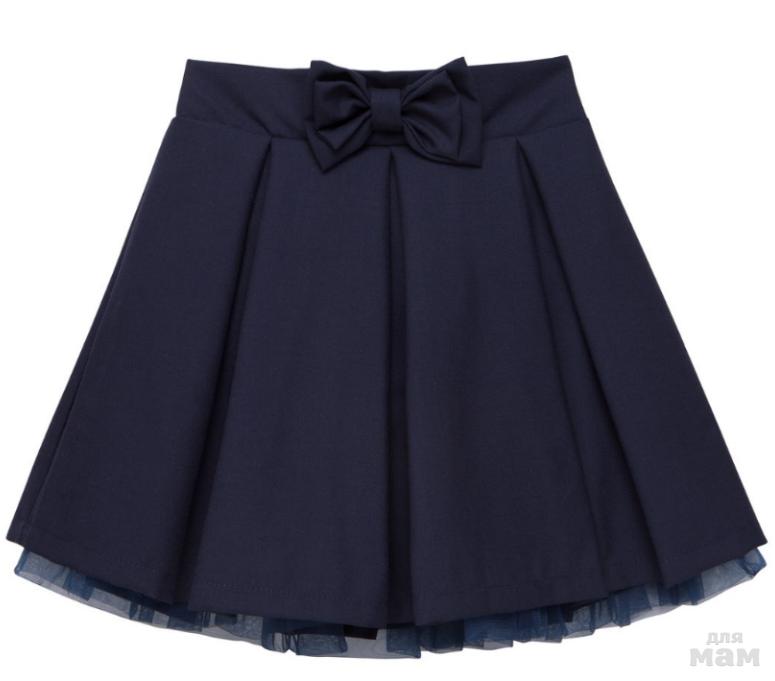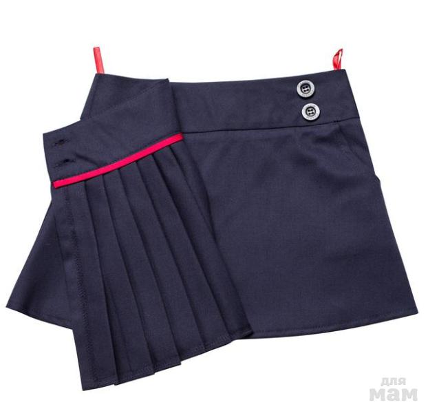 Юбка-парео тёмно-синего цвета со складками спереди. Имеет застежки на две пуговицы снаружи и одну потайную. Дополнительный комфорт обеспечивает подкладочная ткань из 100% хлопка. Незаменимая вещь для школьных будней. Она будет расти вместе с ребенком, при необходимости стоит только переставить пуговицы.
