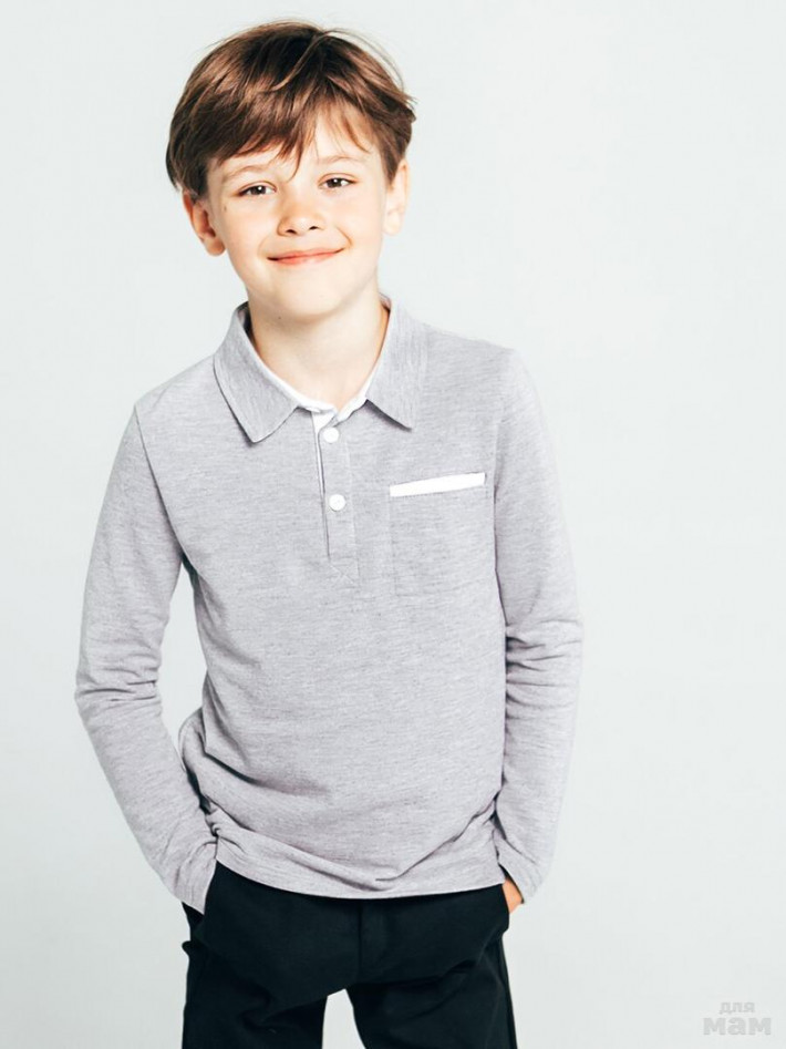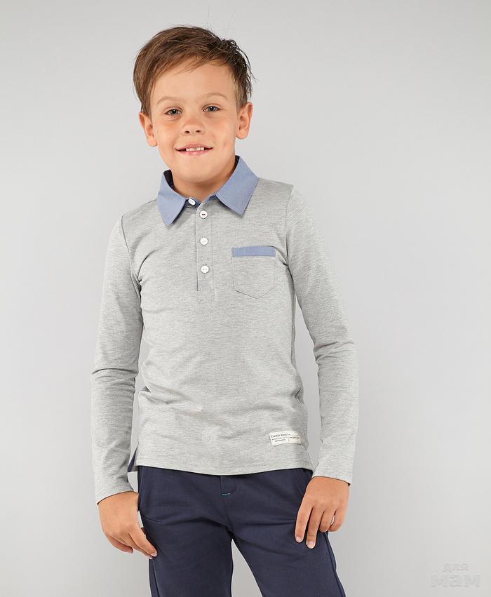 Поло для мальчика серого цвета из хлопковой ткани - пике, обладающей отличными качественными характеристиками. Модель застёгивается на три пуговицы у горловины, воротничок - стойка, рукав длинный, дополнено накладным нагрудным карманом. Поло из хлопкового пике – неотъемлемая часть гардероба юного модника.