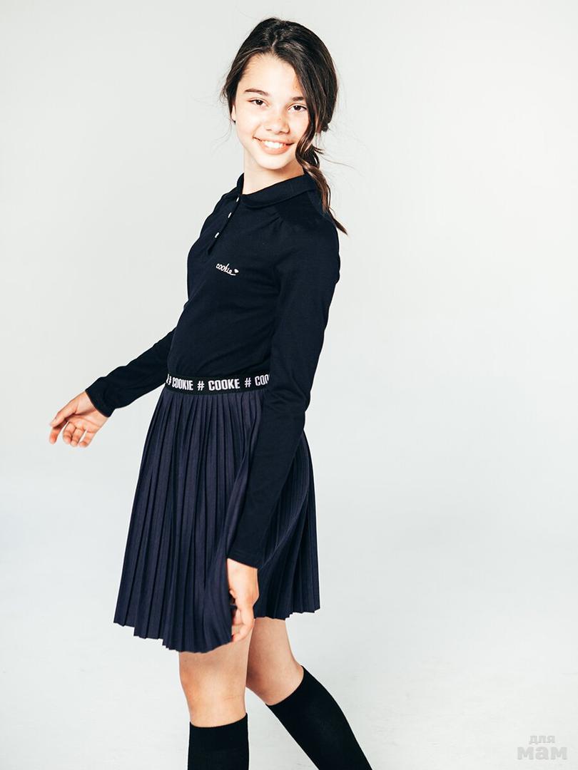 Пышная юбка со встречными складками выполнена из высококачественной полушерстяной ткани тёмно-синего цвета. Очаровательный акцент в виде банта на талии рисует стильный волшебный образ. Эта модель прекрасно подойдет для школы и создаст сказочное настроение маленькой принцессе. Особый комфорт обеспечит подкладка из 100% хлопка со сборкой из фатина по низу изделия. Пышная юбка Cookie на пике моды в этом сезоне.