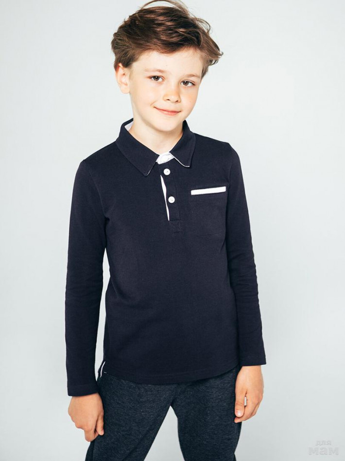 Поло для мальчика синего цвета из хлопковой ткани - пике, обладающей отличными качественными характеристиками. Модель застёгивается на три пуговицы у горловины, воротничок отложной на стойке, рукав длинный, дополнено накладным нагрудным карманом. Поло из хлопкового пике – неотъемлемая часть гардероба юного модника.